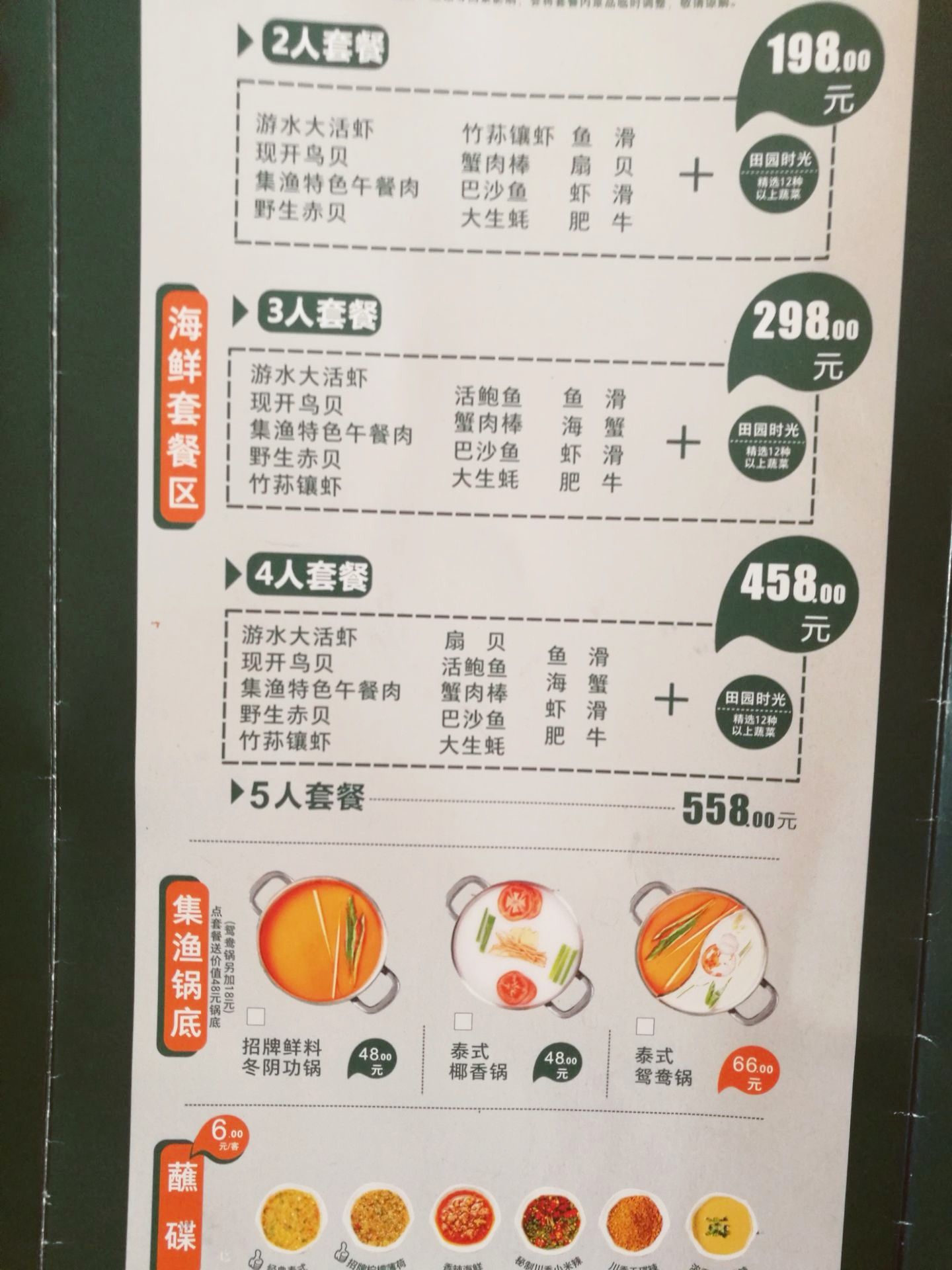 集渔在成都很火,扩张也很快,点的套餐,甜品和小吃可以随便吃, 【服务】服务真的很好,海底捞试的服务,帮着煮菜,捞菜,剥虾! 【环境】环境也很棒,有泰式风景 【口味】味道不错,食材新鲜,虾和螃蟹上桌都还在动,鲍鱼也很鲜活!