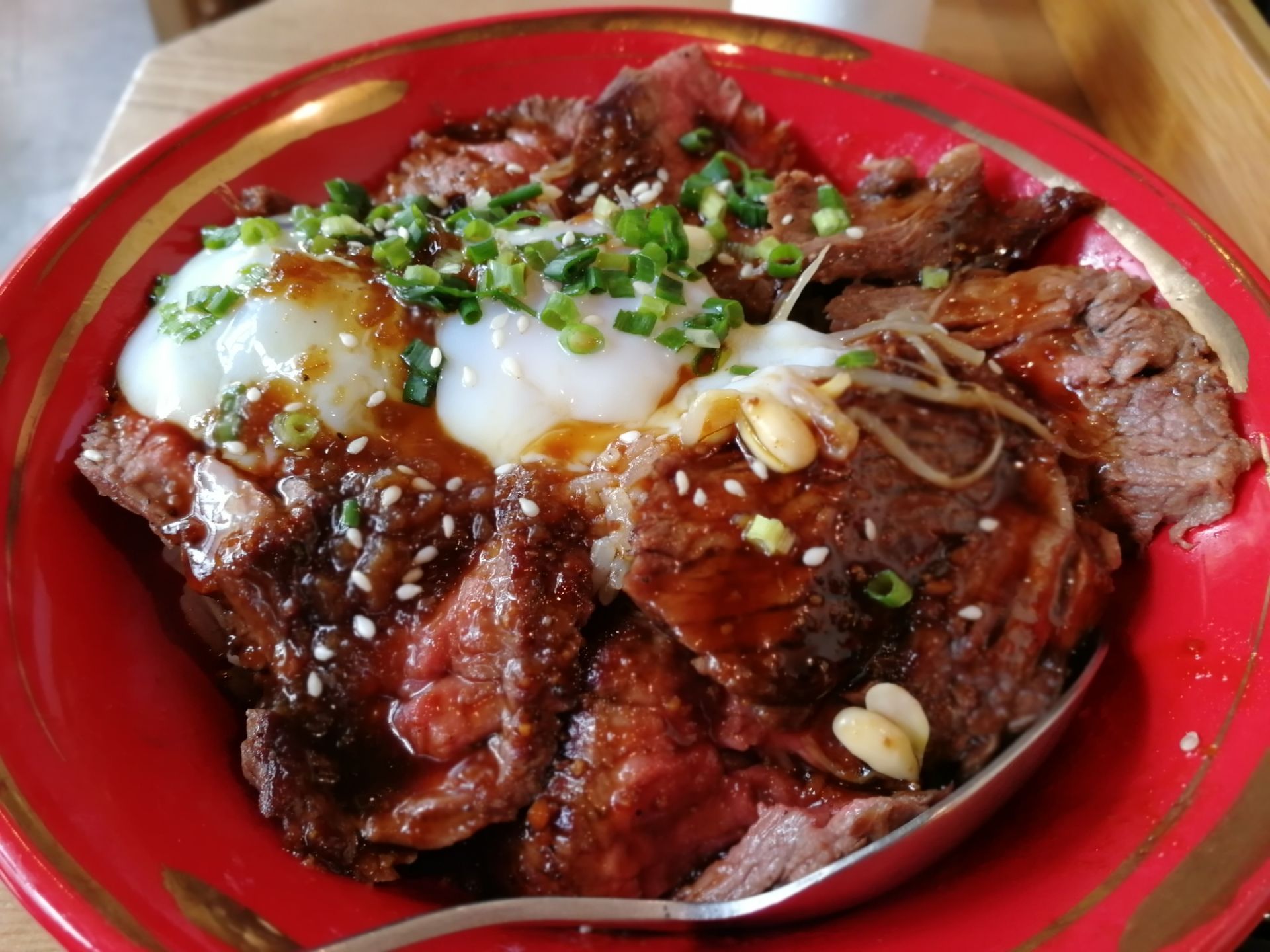 这家人气挺旺,幸亏中午去得比较早,我们吃完出来的时候还有人在排队。里面座位不少,但是布局比较拥挤。菜品很丰富,寿司,拌饭,锅可以满足不同需求。温泉蛋牛排盖饭,牛排的嫩度刚刚好,不会觉得太生也不会觉得咬起来累,酱汁浓郁,非常下饭。同事点了另一个金枪鱼拌饭,也是夸赞不已。不过点单的时候碰到两次等了一会儿他们才说没有了要换,也因为本来点的白桃味冰淇淋没有了才意外发现隐藏菜单:蓝莓味冰淇淋,味道很棒。
