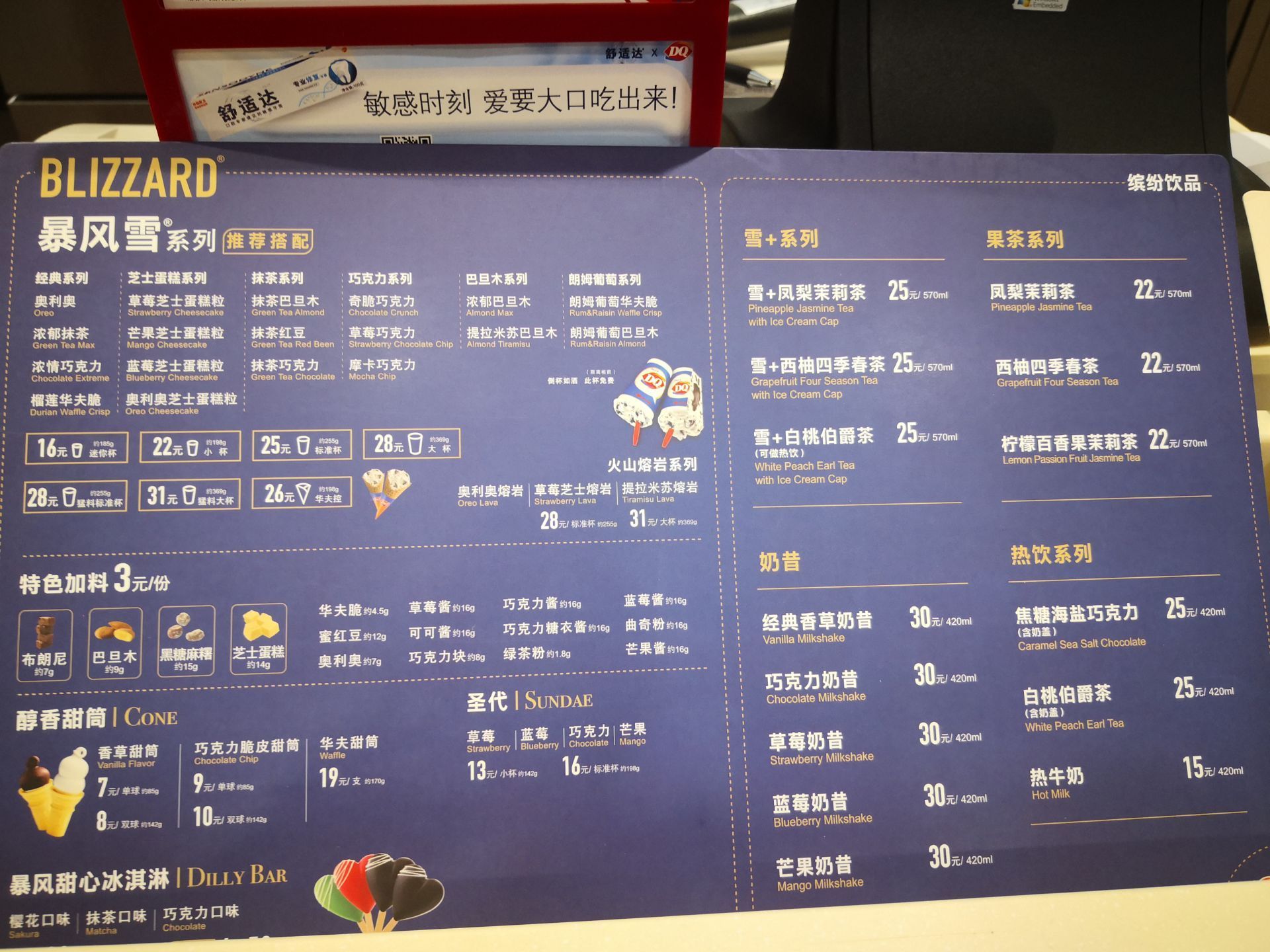 忘记哪个给我分享的一元DQ的冰淇淋了。 今天在大悦城和朋友吃醉西昌,顺便就换了,因为明天到期。一切都是天意。在合适的时间,合适的地点遇到一家DQ。 很多年前在欧尚吃过DQ,印象最深刻的是服务员在招呼我们冰淇淋好了的时候一定要把杯子倒过来,流不下来的冰淇淋。 这家店还挺大的,有很多的位置可以休息。现在的产品也非常多,冰淇淋蛋糕,杯装冰淇淋,碗碗冰淇淋,还有中国茶系列。 生意不错,小等了一会才轮到我。原价7元。特价1元。第一口巨冰凉。能感受到一大块冰顺着食道滑下去。味道很不错,奶香味道。