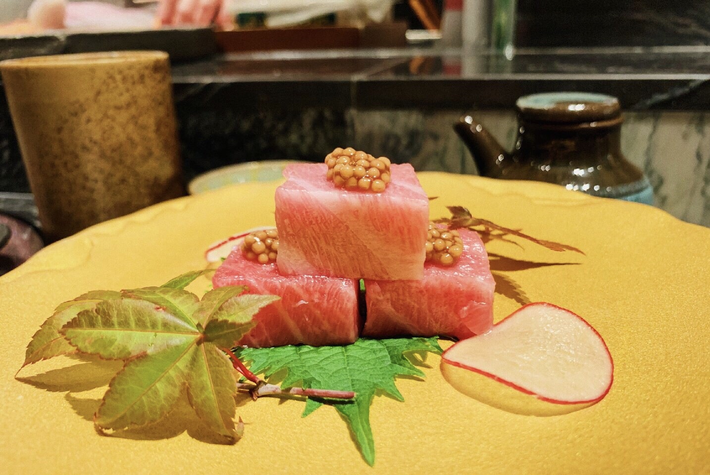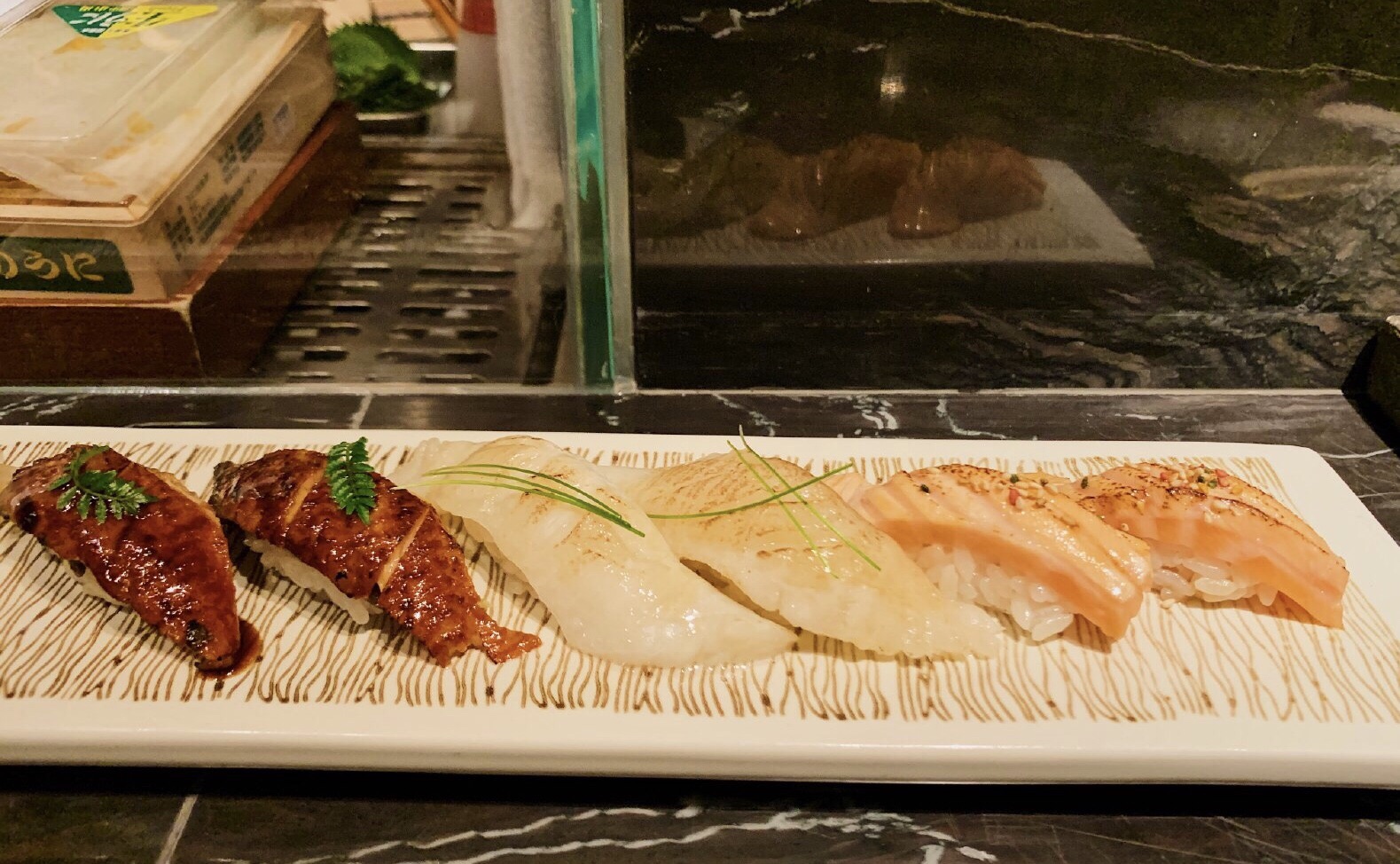 天穴日本料理,本想要说去吃元气寿司,多快好省呀,但是被J同学认定我的建议有阴谋性,于是,改吃了这家。餐厅的装修有点纸醉金迷复古的感觉,连餐厅里面播放的音乐都是温柔的Jazz,餐厅的户外区还伫立跳跃着闪烁火光的取暖灯,给人一种冬日的温暖感。推荐的是火炙左口鱼裙边和烟熏大吞拿鱼,好肥肥,适合长膘。