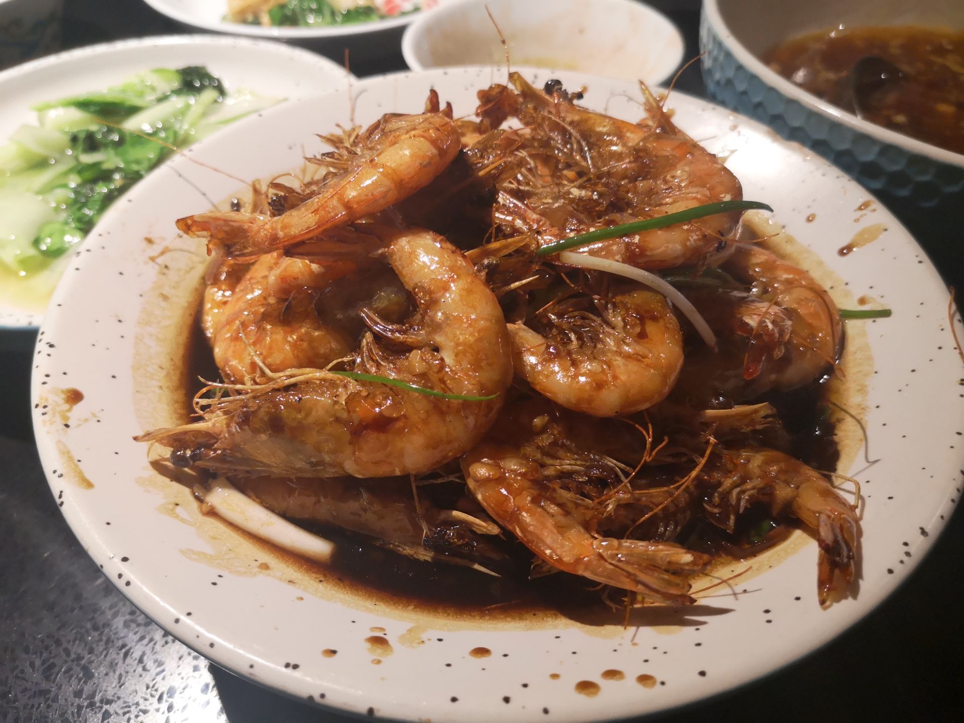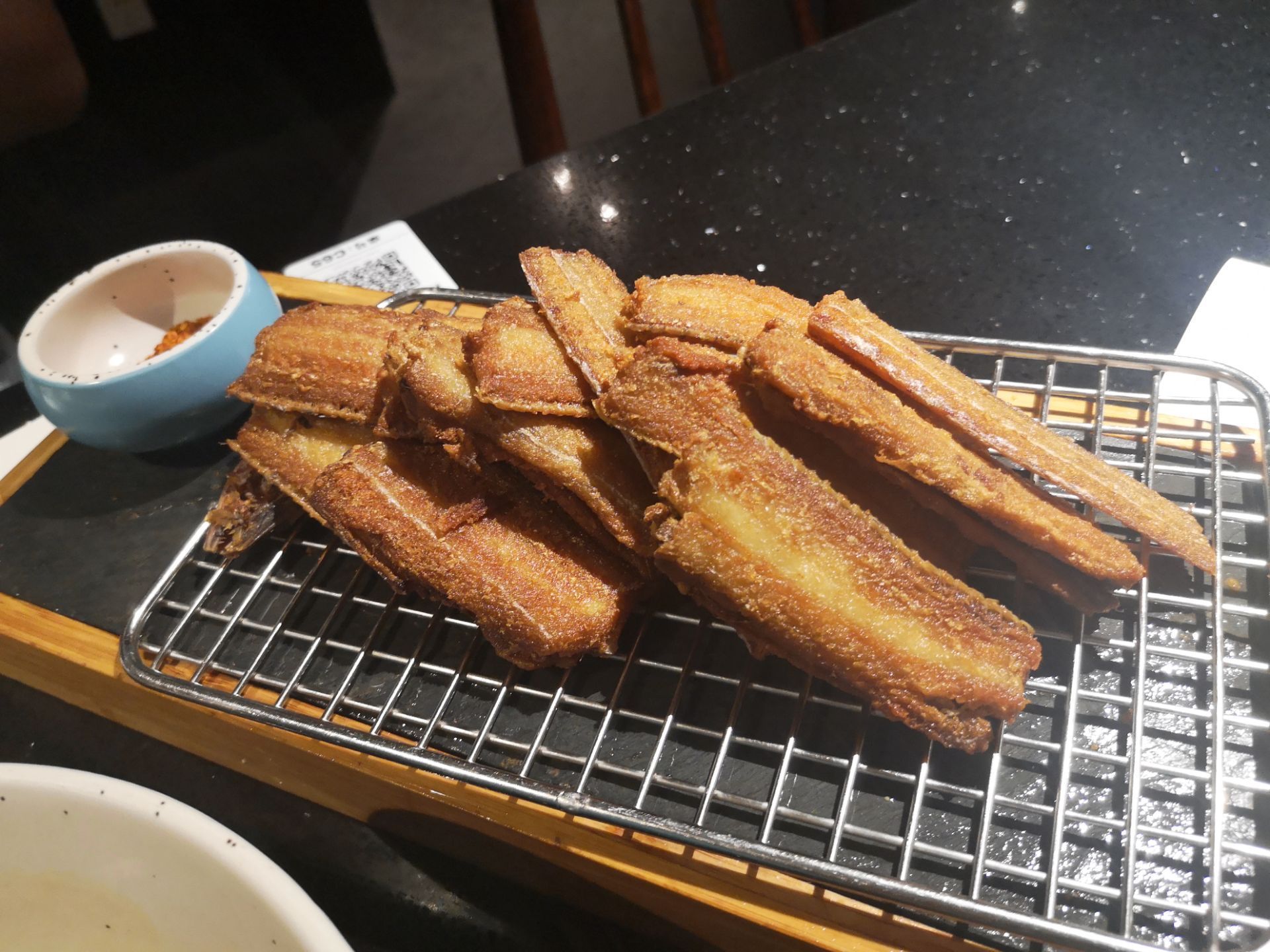 直接进去吃了 油爆虾是大的虾,带鱼大油锅烧得很透,但是味道太咸。 然而,到那里的时候我的号已经过了