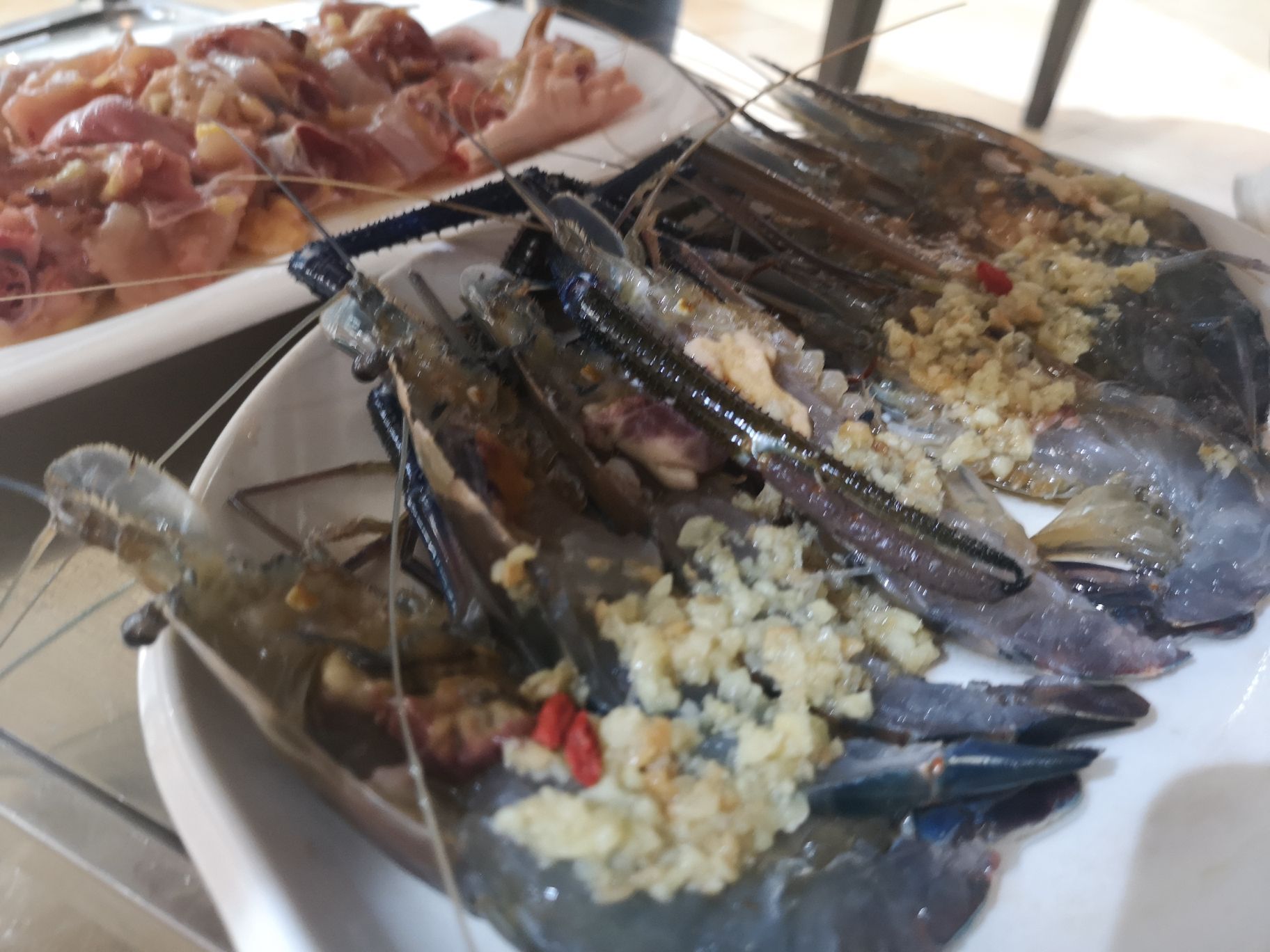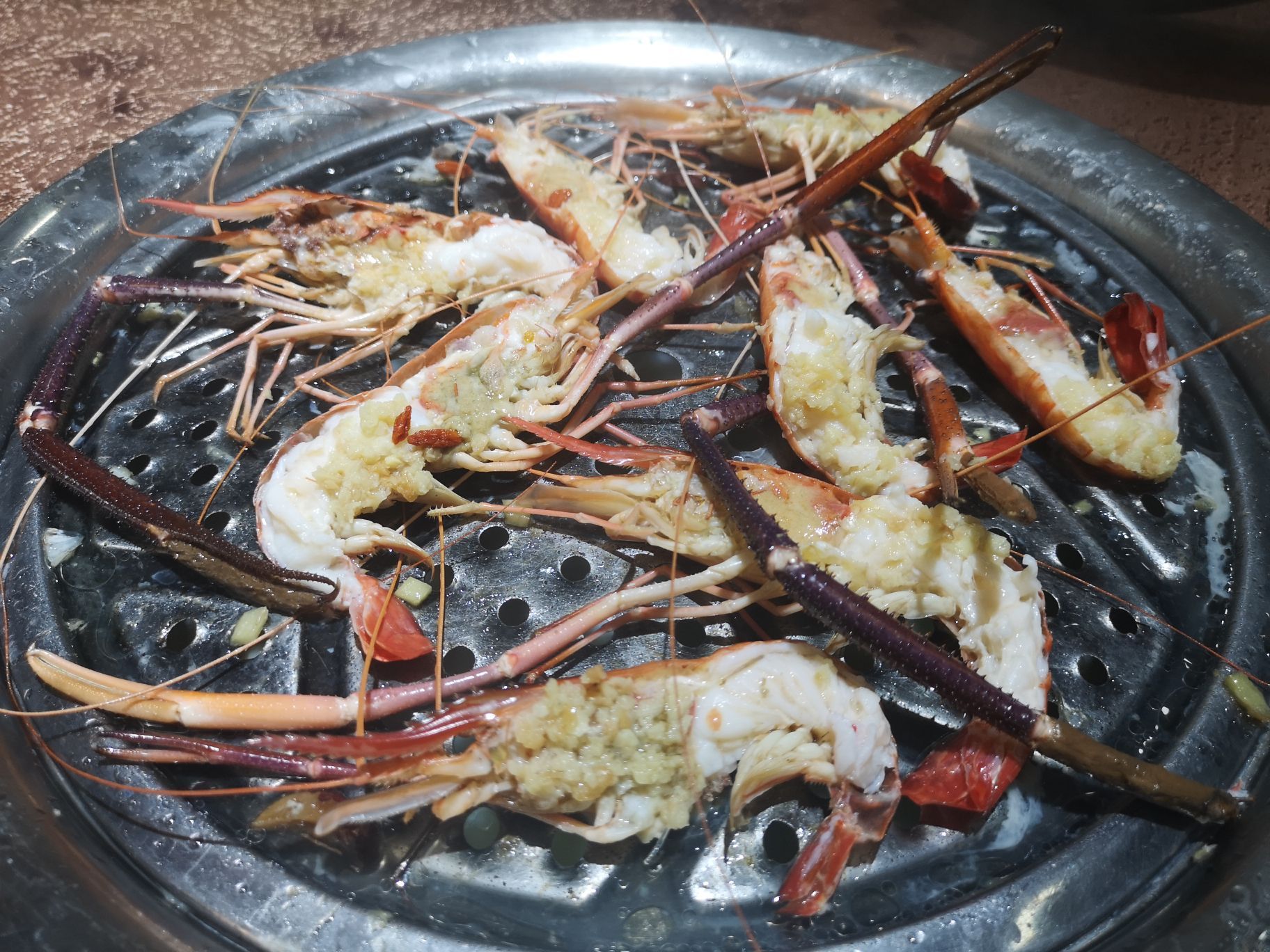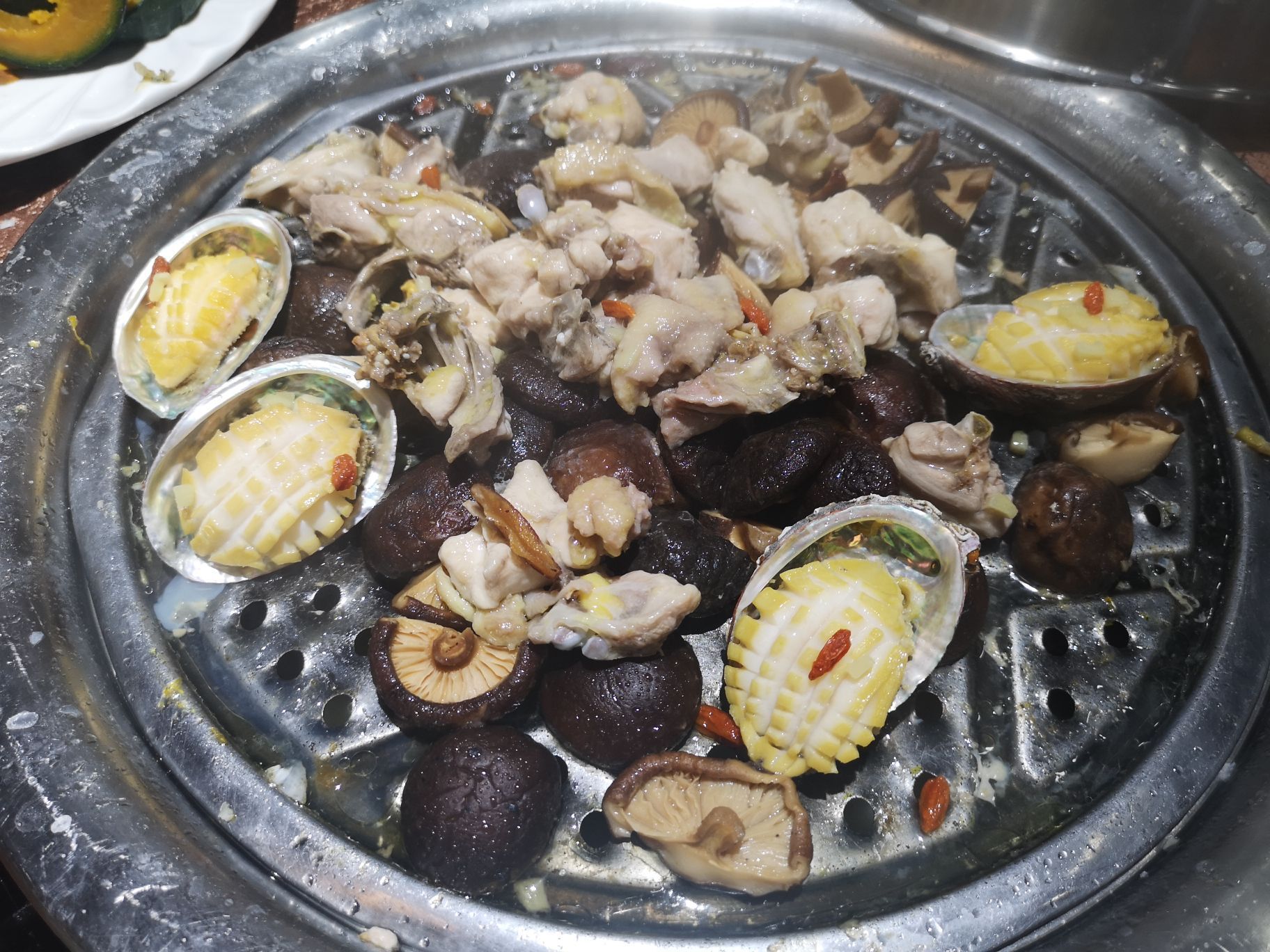 朋友带去吃的店,之前已经推荐我过来吃,说是桑拿做法而且最后可以吃精华粥底。点了两斤脆肉脘鱼,4只大虾,只鲍鱼,还有半只鸡,不过其实我不太建议再另外加点栗子南瓜,毕竟最后还是吃下面的白粥。鱼肉清蒸吃还不错,麻鸡也行,不过其实鲍鱼我就觉得没有味道了,还不如多点其它海鲜。虾的话其实比较坑因为太有水分,4只已经差不多一斤。