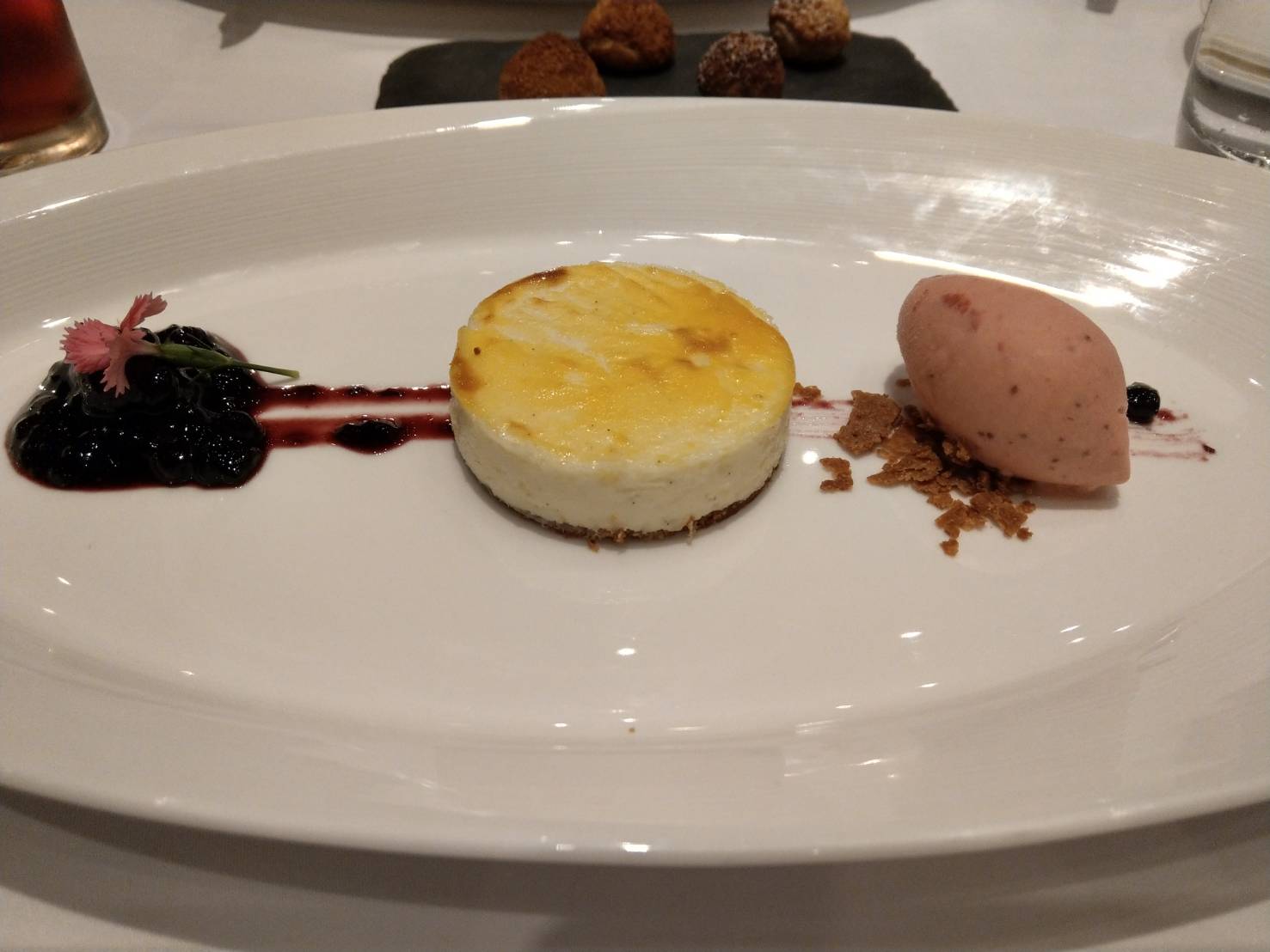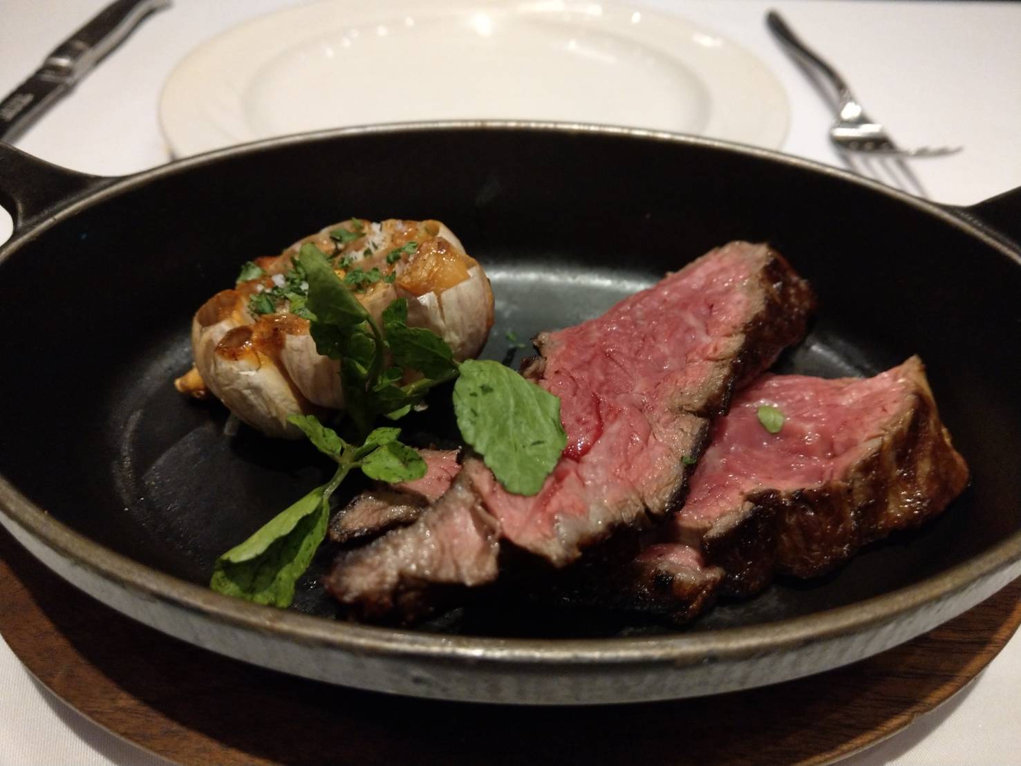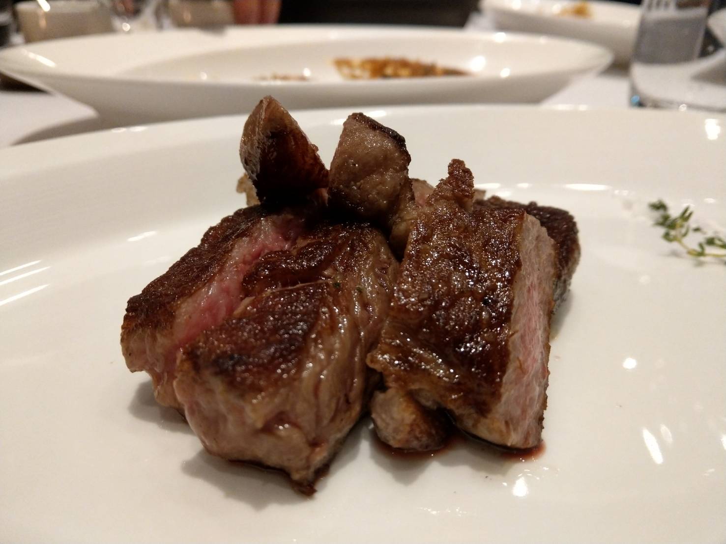 各項都不愧有米其林一星水準,餐前麵包中規中矩,可口但不會想多吃,當天所點的主菜為老饕和A4和牛牛排都是採用濕式熟成,除了肉質好且都處理的很到位,老饕牛排肉吃起來很鮮嫩,搭配的三種佐料最推紅酒醬汁,A4和牛肉是選用宮崎產的,吃起來肉質細緻不會太油,建議搭配紅酒享用口感更佳,前菜至主餐整體感受很好只可惜似乎少了點驚艷的地方,但甜點倒是超出牛排店的水平不少,尤其是因壽星加贈的巧克力布朗尼蛋糕更是甜而不膩,比台北國賓的A cut相比更佳好吃,是會讓人吃飽了還會想硬撐吃下的好味道,令我回味激賞不已,因此劃下了漂亮的收尾!