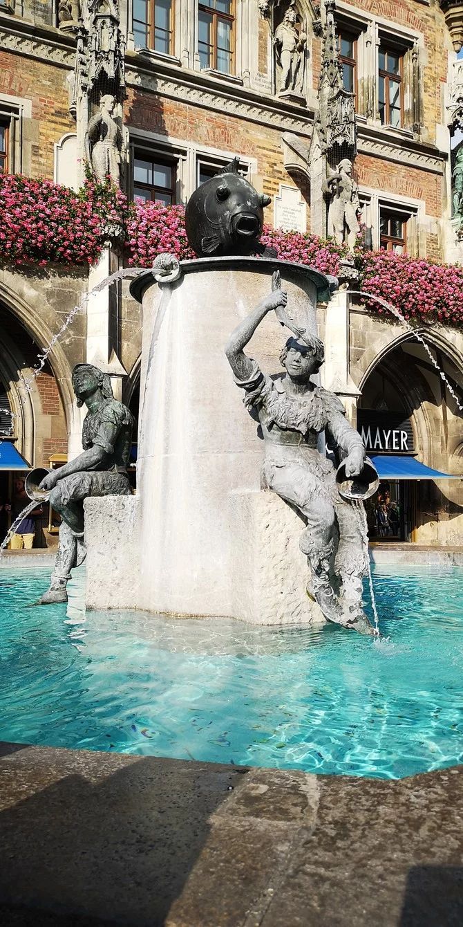 ...许愿池中心喷泉上的胖鱼样子非常可爱,池中来自各地的钱币都聚集于此,它应该是世界上赚钱最多的胖鱼在慕尼黑市政厅的玛丽亚广场上有个可爱的许愿池,许愿池中心喷泉上的胖鱼样子非常可爱,池中来自各地的钱币都聚集于此,它应该是世界上赚钱最多的胖鱼。
