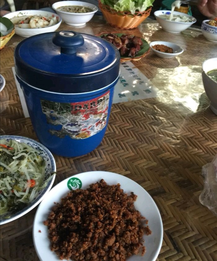 在版纳要吃老字号正宗傣味,就要到嘎洒镇旁边曼凹餐厅在版纳要吃老字号正宗傣味,就要到嘎洒镇旁边曼凹餐厅。门口可以停车,我们一行人驱车闻香前往,一座二层傣家竹楼,可容纳三百人同时就餐。上座后不一会琳琅满目的傣家美食呈现在各位面前,光看和闻就让大家垂涎三尺了,你们们看图欣赏吧!