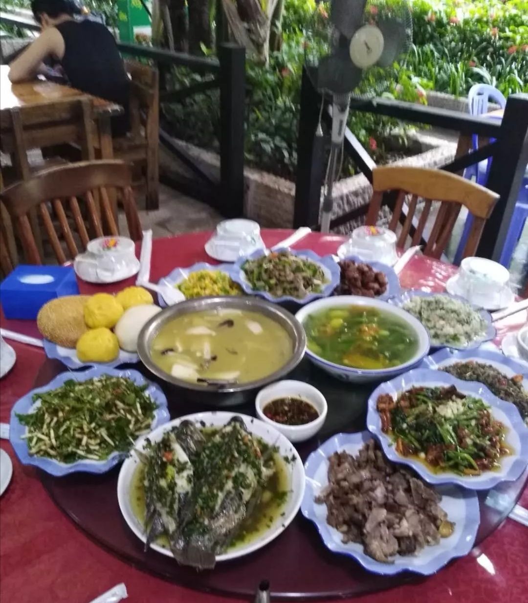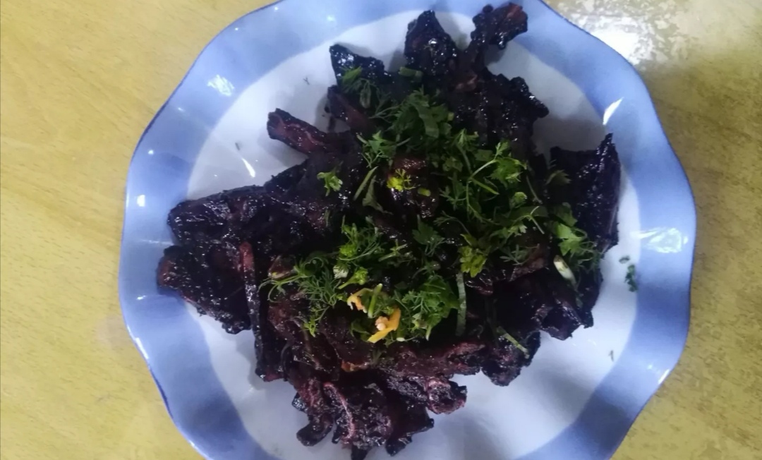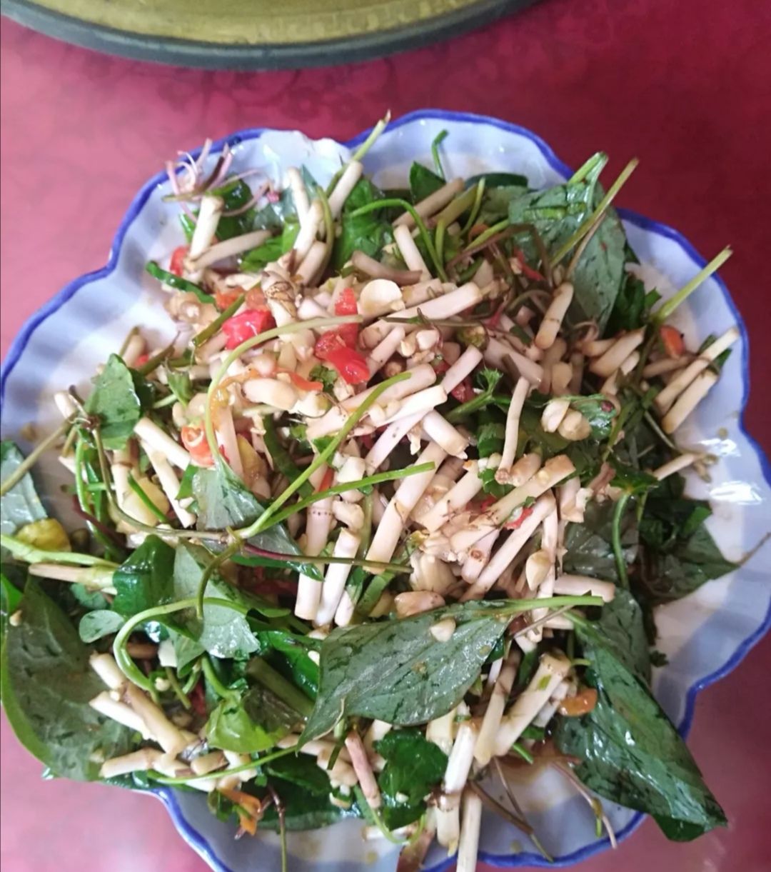 这家腌肉馆景洪市勐遮路22号,他们家餐厅比较大,门口不好停车,要开去前面的有停车带上。餐厅里的炒腌肉的确很好吃,都是家常菜,黄焖鸡就不错,还有西双版纳特产炒芭蕉花,凉拌折耳根味道都不错,鱼也很好吃。
