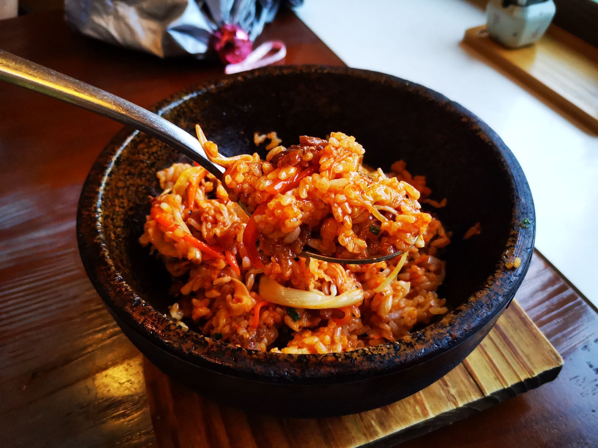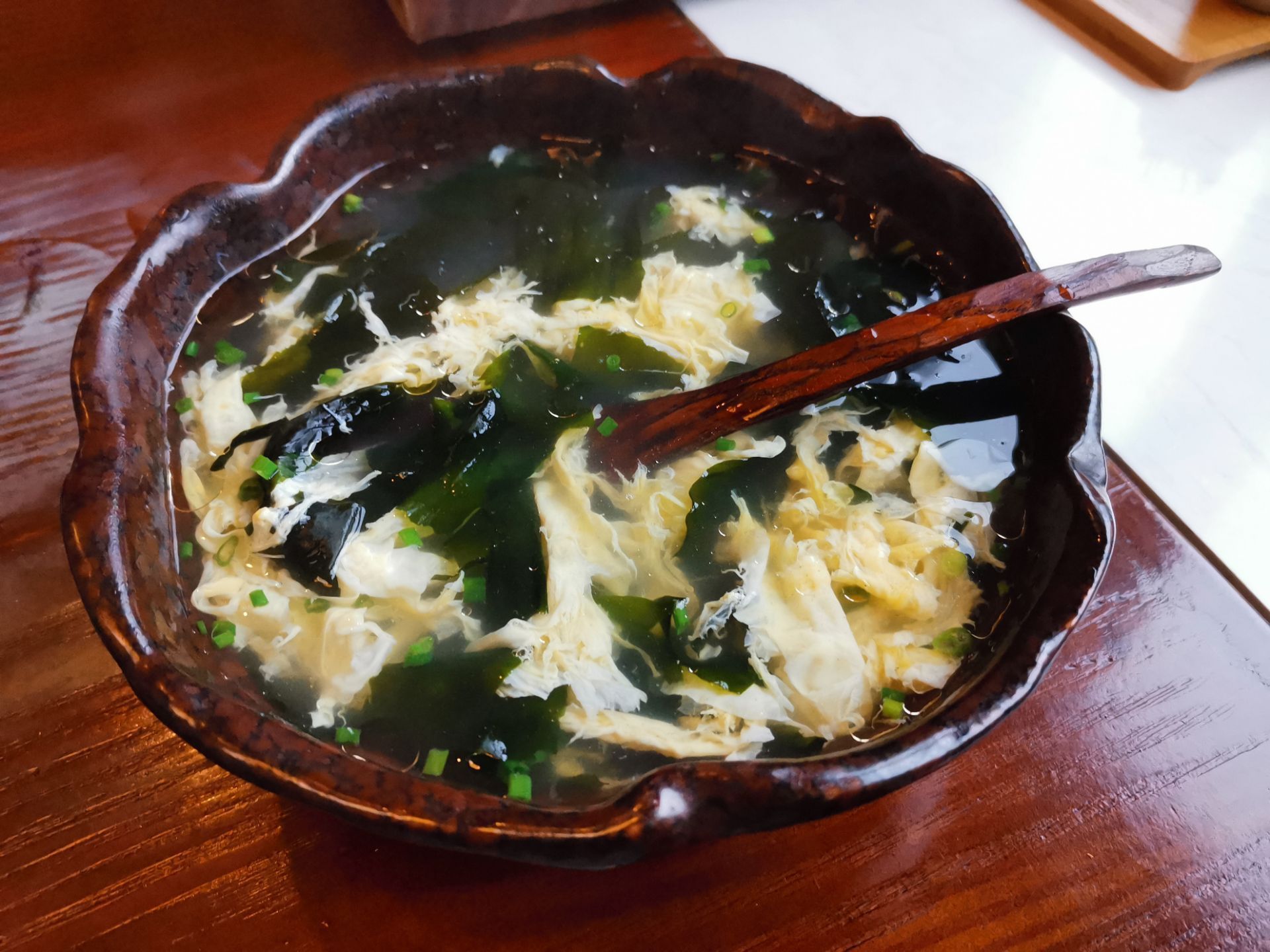 清汤里面有鸡蛋和裙带菜(大概是),调味和口感也都恰到好处。吃了一口,好香啊,还有脆脆的锅巴,美滋滋