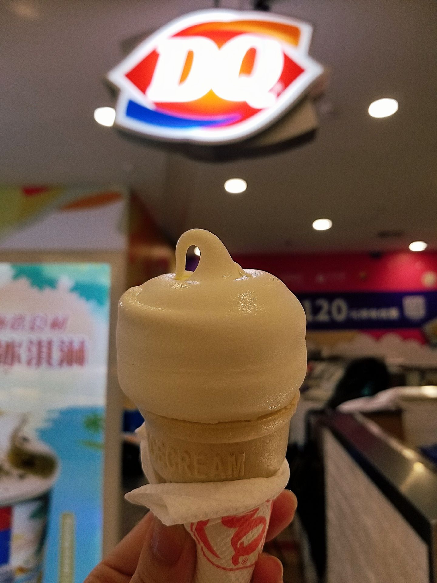 2019-9-1 因为众所周知的原因#艾小米的1米生活# 【服务】小哥哥非常的奈斯,赞 【口味】 |香草甜筒^秒杀1米,第一次吃DQ家的蛋筒(对,阿拉上海宁叫这个是,蛋筒),奶香非常浓郁,果断秒杀了开封菜和麦当当家的平价款而且很良心,冰淇淋直到筒底,不像那两家的筒里……空空如也 小哥哥虽然很奈斯,可是为什么把蛋筒可以打得这么丑,这么丑,这么丑……真的是因为艾小米的高定款么