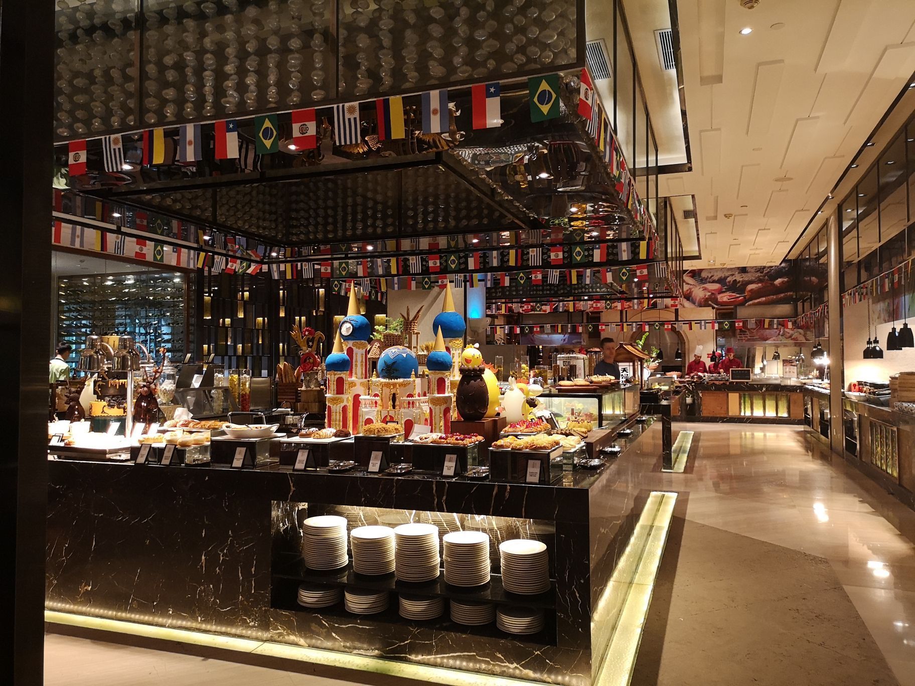 这家餐厅位于万富希尔顿的一楼,早上是住客的自助餐早餐,还算丰富,而且新鲜这家餐厅位于万富希尔顿的一楼,早上是住客的自助餐早餐,还算丰富,而且新鲜。估计是工作日反正人不多,吃起来也舒服。海鲜,寿司刺身,雪糕,甜品什么的都很齐全。
