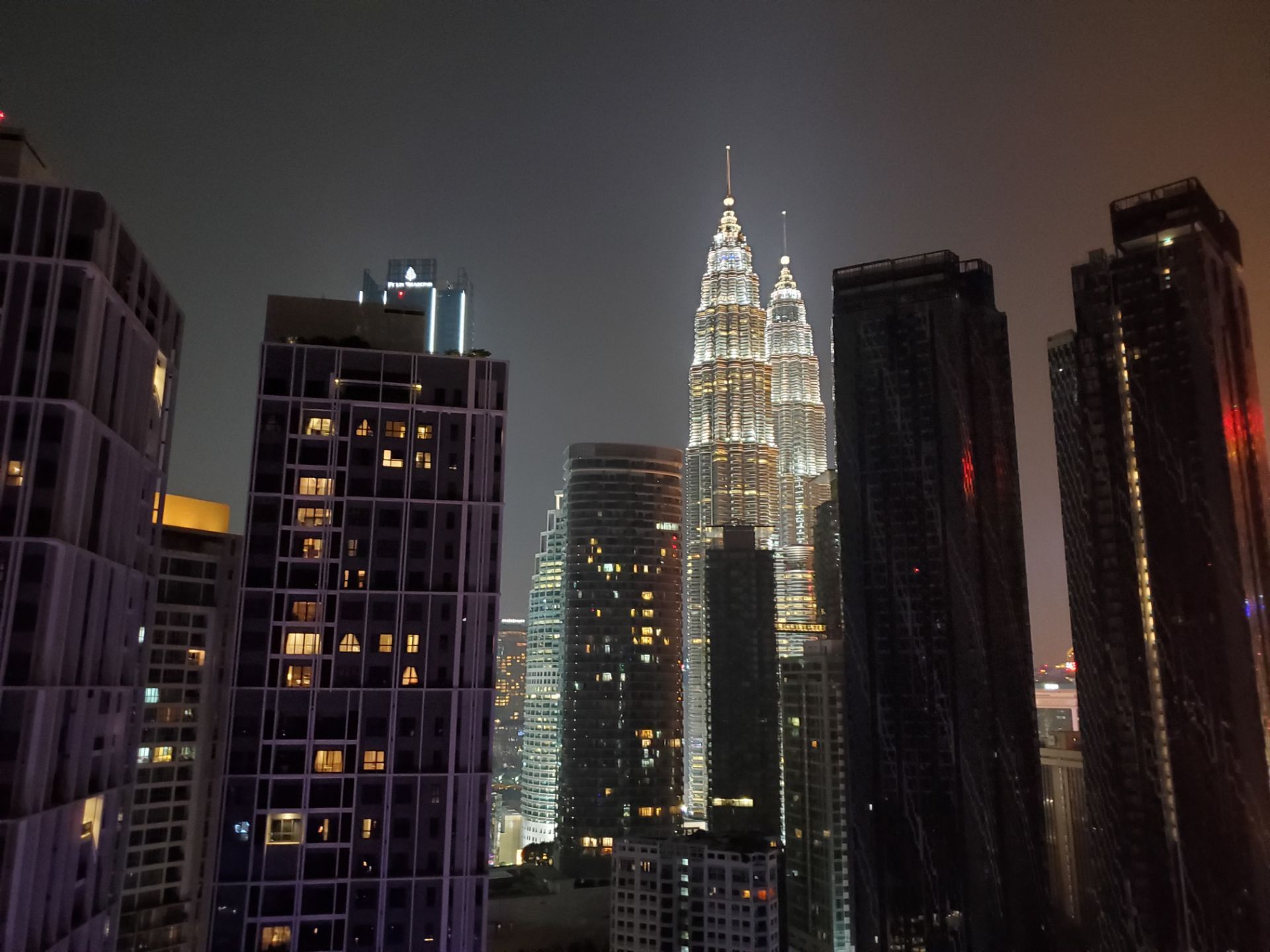 巴厘岛回成都,在吉隆坡转机,为了带小朋友看看双子塔特意在吉隆坡停留了一天,住在附近酒店,玩的很累回酒店,洗漱完毕后,想到来都来了,还是找个能看双塔的地方喝一杯吧,步行过来,酒吧在楼顶,工业风,环境还不错,夜晚的双塔,吹着微风,听着音乐,喝点小酒,连小朋友都觉得很惬意呢。