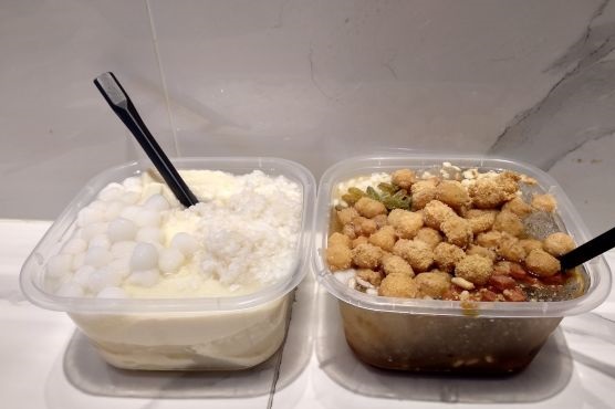 天吃到了大名鼎鼎的甜心闲生传统手工冰粉和朋友慕名过去,点了新品双色球冰粉和醪糟冰醉甜豆花殺 双色球冰粉有两个冰淇淋球,选了一个红糖味,一个醪糟味,可以说非常特别了,红糖味比较清爽没有很甜,醪糟味入口浓浓的奶味,咽下去之后嘴里才是醪糟的余味~爱醪糟人士表示非常喜欢里面的芋圆和小汤圆很Q,消暑利器 冰粉种类有好多,每款都好好看,看着都想吃 醪糟冰醉甜豆花因为我朋友不喜欢红糖,所以点了个醪糟冰醉甜豆花, 刚开始我们都觉得一般,后面越吃越好吃所以大家最好和匀了再吃,这款挺惊喜的,豆花很清香,一点都不腻