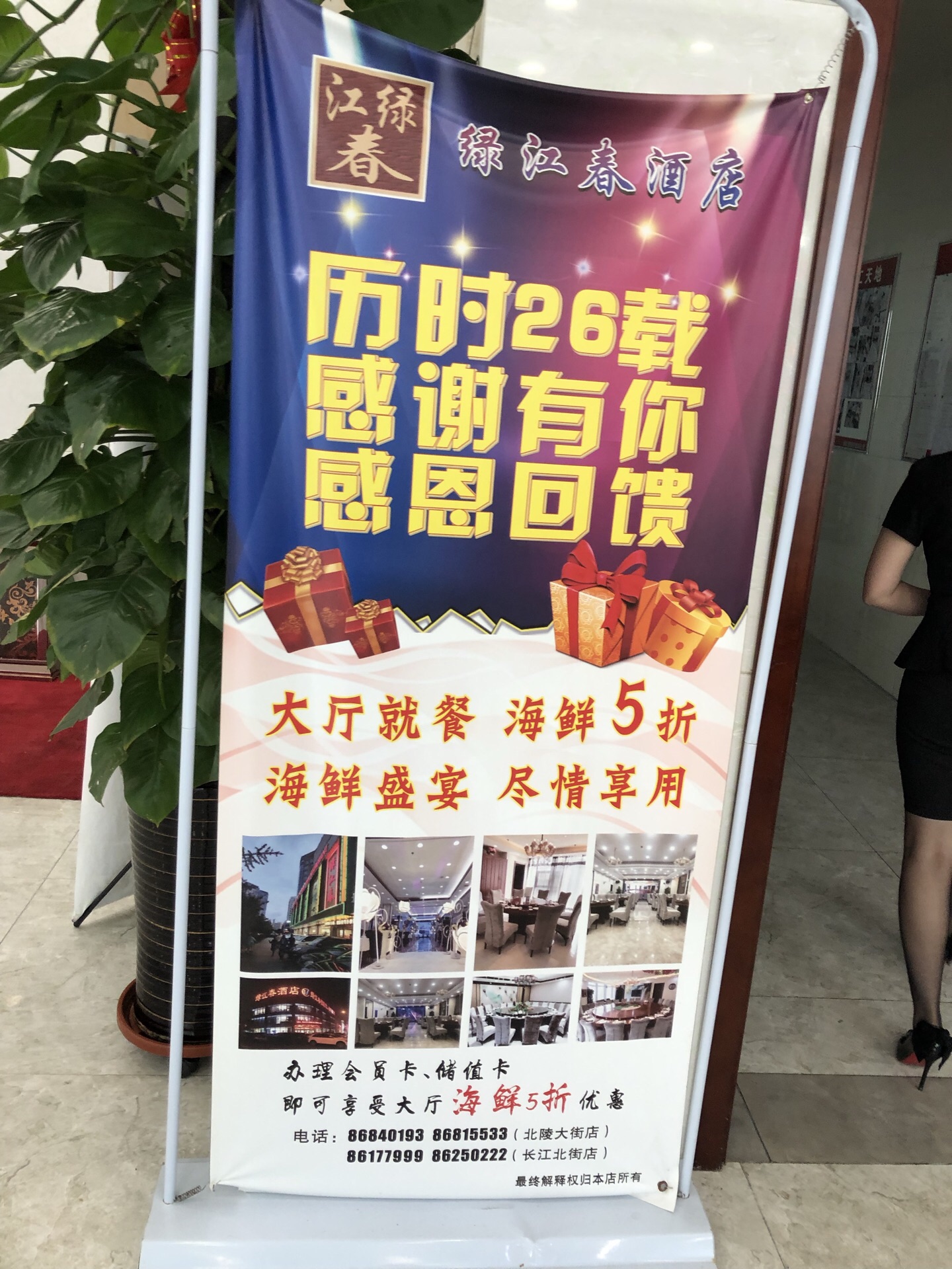 现在有了大厅就餐海鲜五折的活动,不得不说这优惠力度还是很大的!味道也很地道的东北菜绿江春,在沈阳很有名气的一家大众饭店,婚宴之类的都可以办!现在有了大厅就餐海鲜五折的活动,不得不说这优惠力度还是很大的!菜的量整体来说都很大的!味道也很地道的东北菜!门口停车也很方便的!保安尽职尽责!