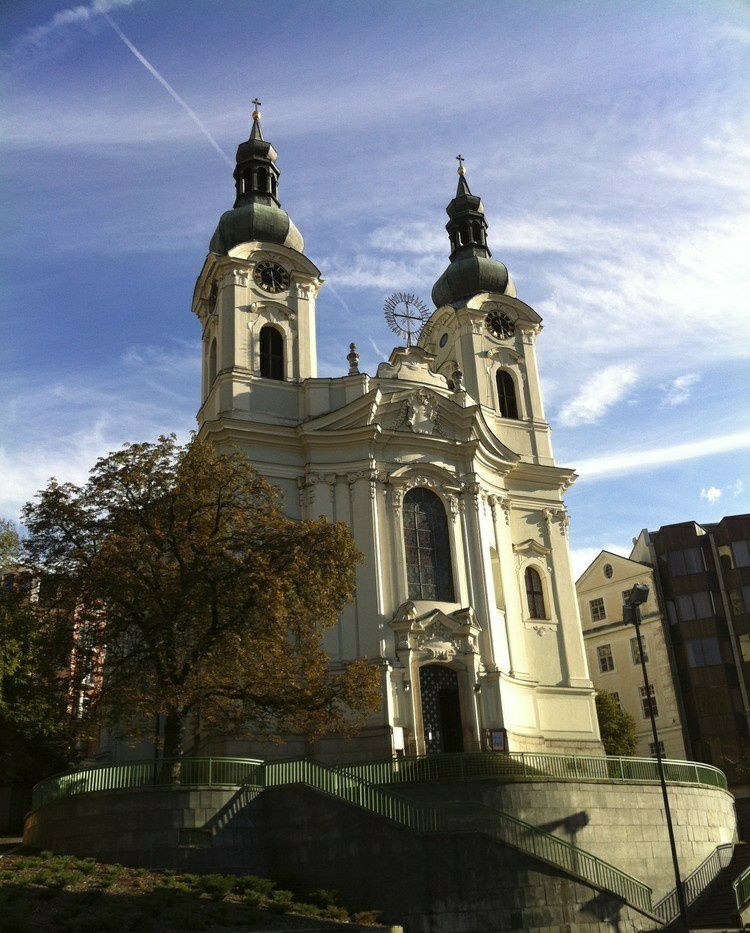 1766年,由当时捷克最著名的设计师设计的,他的蓝顶白墙的风格成为了当地最漂亮的巴洛克的建筑,挺不错这座教堂修建于1733~1766年,由当时捷克最著名的设计师设计的,他的蓝顶白墙的风格成为了当地最漂亮的巴洛克的建筑,挺不错。