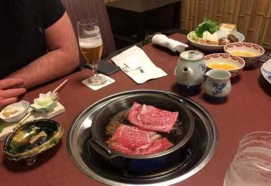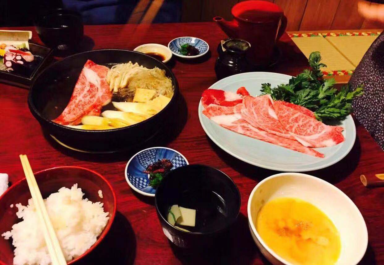 我之前看旅游攻略,说是非常推荐在浅草寺附近的这家饭店,所以就去了。我们中午去的时候人不算多,当时是一位非常和善,大约四十来岁的服务员接待我们,她非常有礼貌,说一口流利的英语,仔细的给我们推荐菜品和倒茶,服务真的非常棒。 我们三人点了份寿喜烧和牛排盖饭的午饭的套餐,大概一份在2500日元左右,还有一份雪花牛肉寿喜烧大概8000日元,都很好吃,肉非常嫩,米饭软硬适中,无可挑剔。