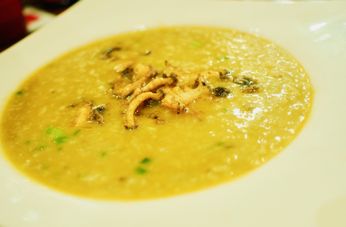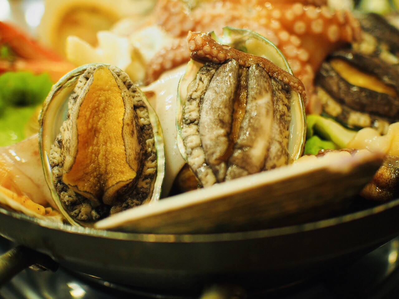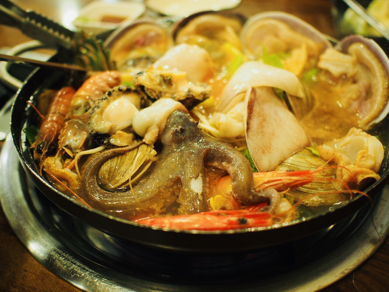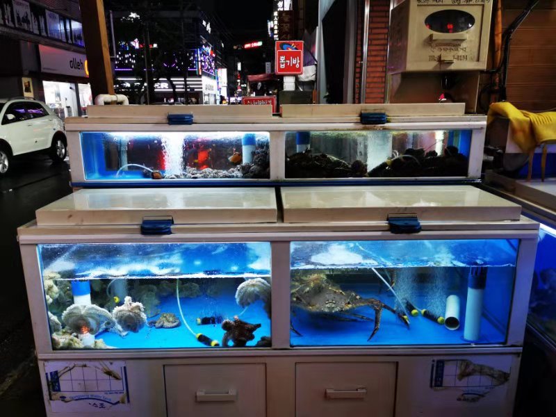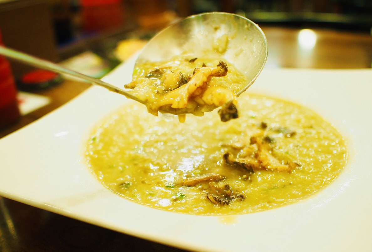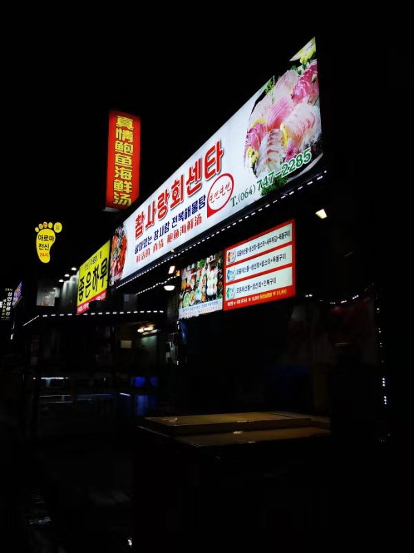 遇到台风那就只能就近了,酒店踱步过来一百多米,不过隔壁桌说是花了俩个小时过来的也是佩服! 门口是水族箱养着很多海鲜,因为在上海一直去韩国街吃老土房,所以对于这种style很是熟悉了!就餐环境比较传统,一半是四人桌椅️拼,另外一半是比较typical的韩式跪着坐的矮桌。 套餐为主,点了最小份的海鲜,里面有活爬的,各种贝类还有小鳌虾和鲍鱼等,底部都是豆芽菜,吃出通风的节奏! 带鱼很长条,烤的,应该比黄鱼要贵一些!下部很香脆,肉质肥厚,上面偏湿软带胆有些苦味,总体还不错! 鲍鱼粥,切片的鲍鱼和加了海鲜高汤熬的粥,挺原味的,加点酱油可提鲜!一顿可以人民币买单,六百出头!