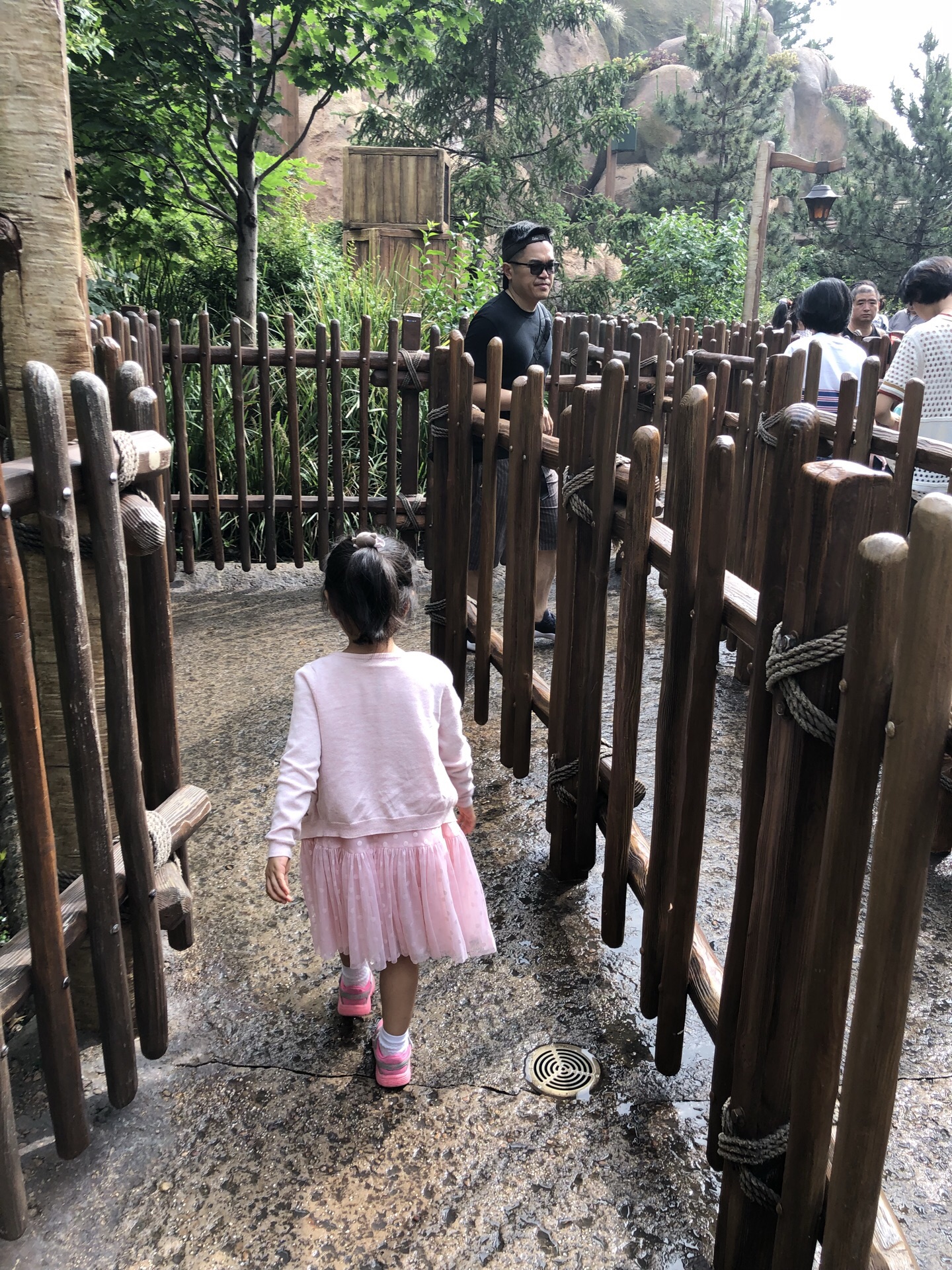 由于进园时间比较早,所以大约排了半个小时左右,算是比较快的进园后第一步先申请快速通行证,但是速度太快,只抢到飞跃地平线的。所以决定火速来到热门的七个小矮人,也是女儿极度想要玩的。由于进园时间比较早,所以大约排了半个小时左右,算是比较快的。