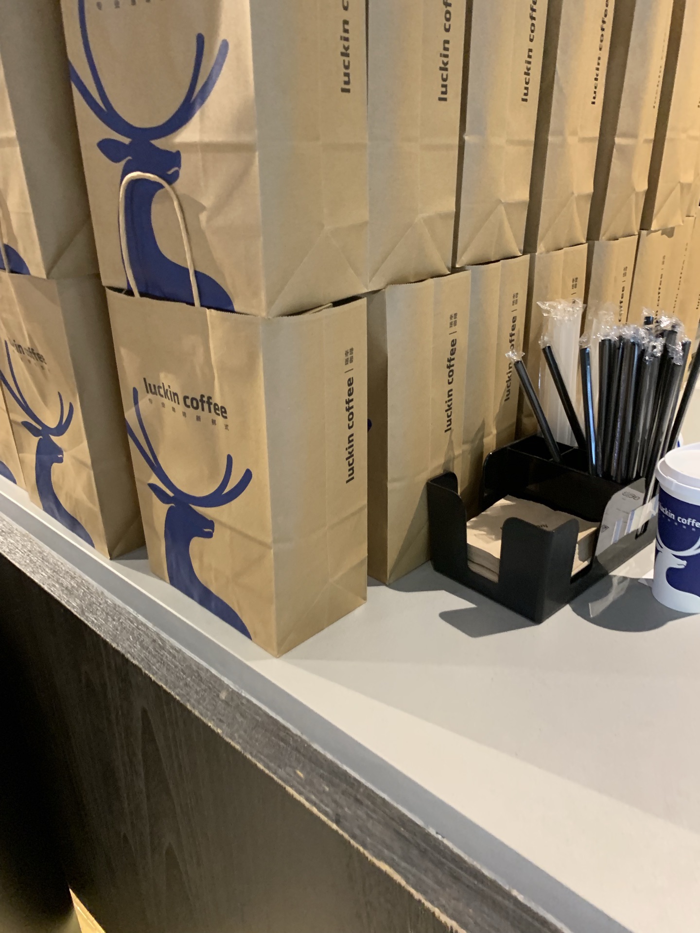 珠江路的新世界大厦这边有家瑞幸咖啡。曾经来过多次,这次路过时,恰好下雨,于是到这边来避下雨。这家店旁边还有家星巴客。这家店里面还比较大,与其它瑞幸不同的是,这家店里的座位较多,可以在此坐一会,与朋友聊聊天。近期喝瑞幸还是较多的,个人觉得也是一种选择,有些品种的口味还是可以的。