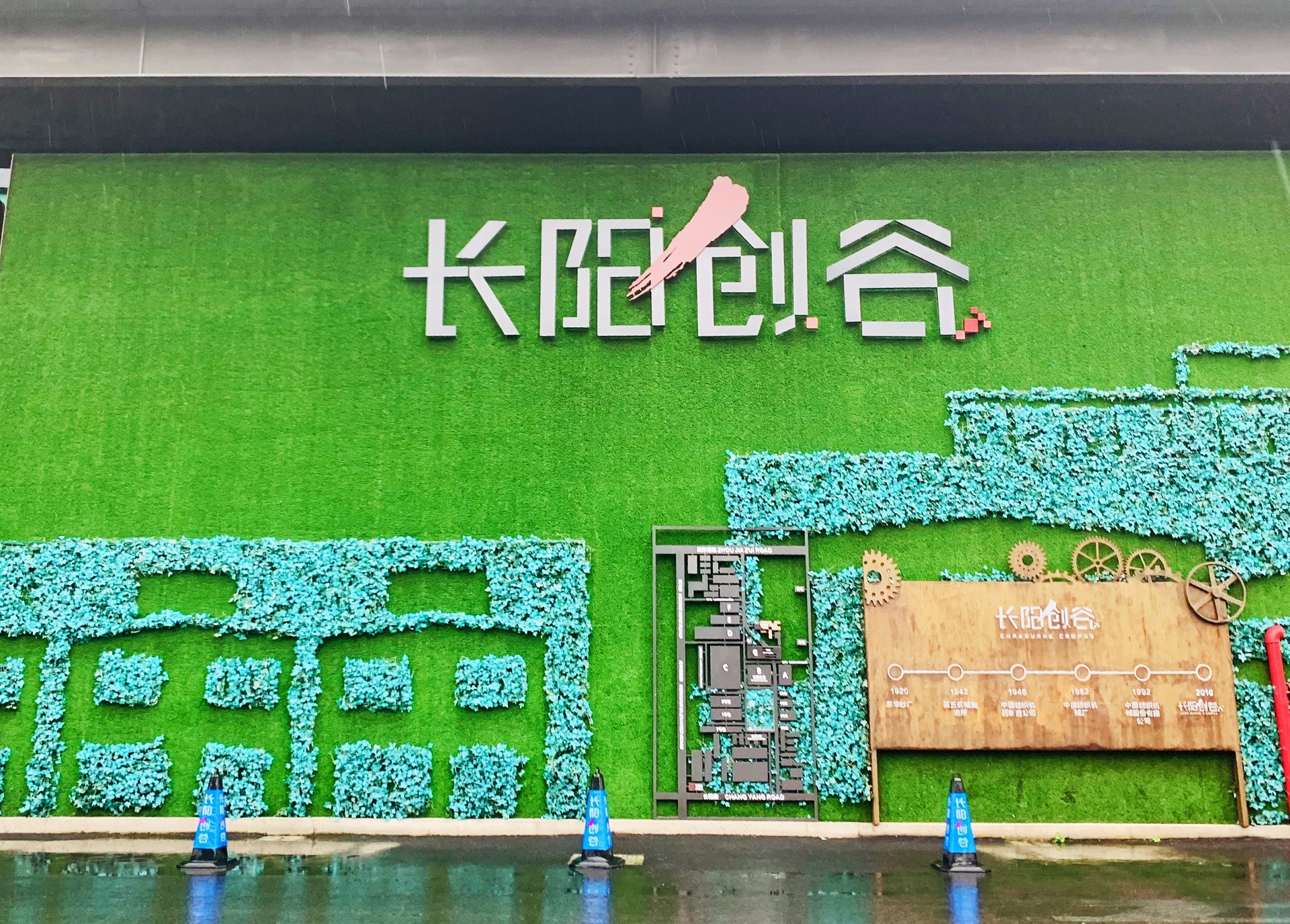 长阳创谷产业园 上海市杨浦区长阳路1687号 地铁十二号线宁国路站约400米 到底是长阳谷创意产业园 还是长阳创谷 一直没搞明白 在长阳谷创意产业园的脊近完美康复中心做肩颈理疗 所以最近来这里的频率有点高 凭心而论 还是在都市水泥森林里呆久了 看多了格子笼般的办公模式 每次来到这个绿意盎然 生机勃勃的Campus科技园 老厂房和现代建筑的有机融合 墙面上的随意涂鸦 总有种世外桃源的感觉 在这里工作学习一定心情愉悦很多