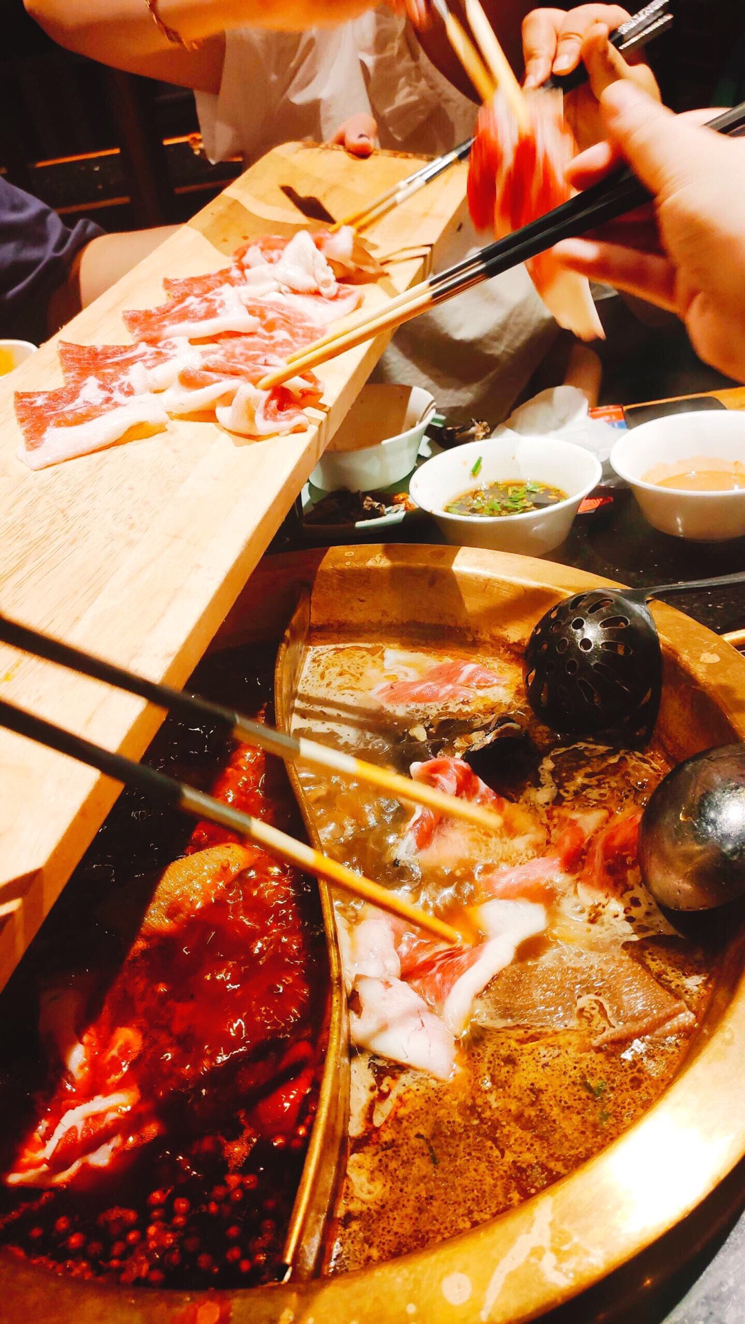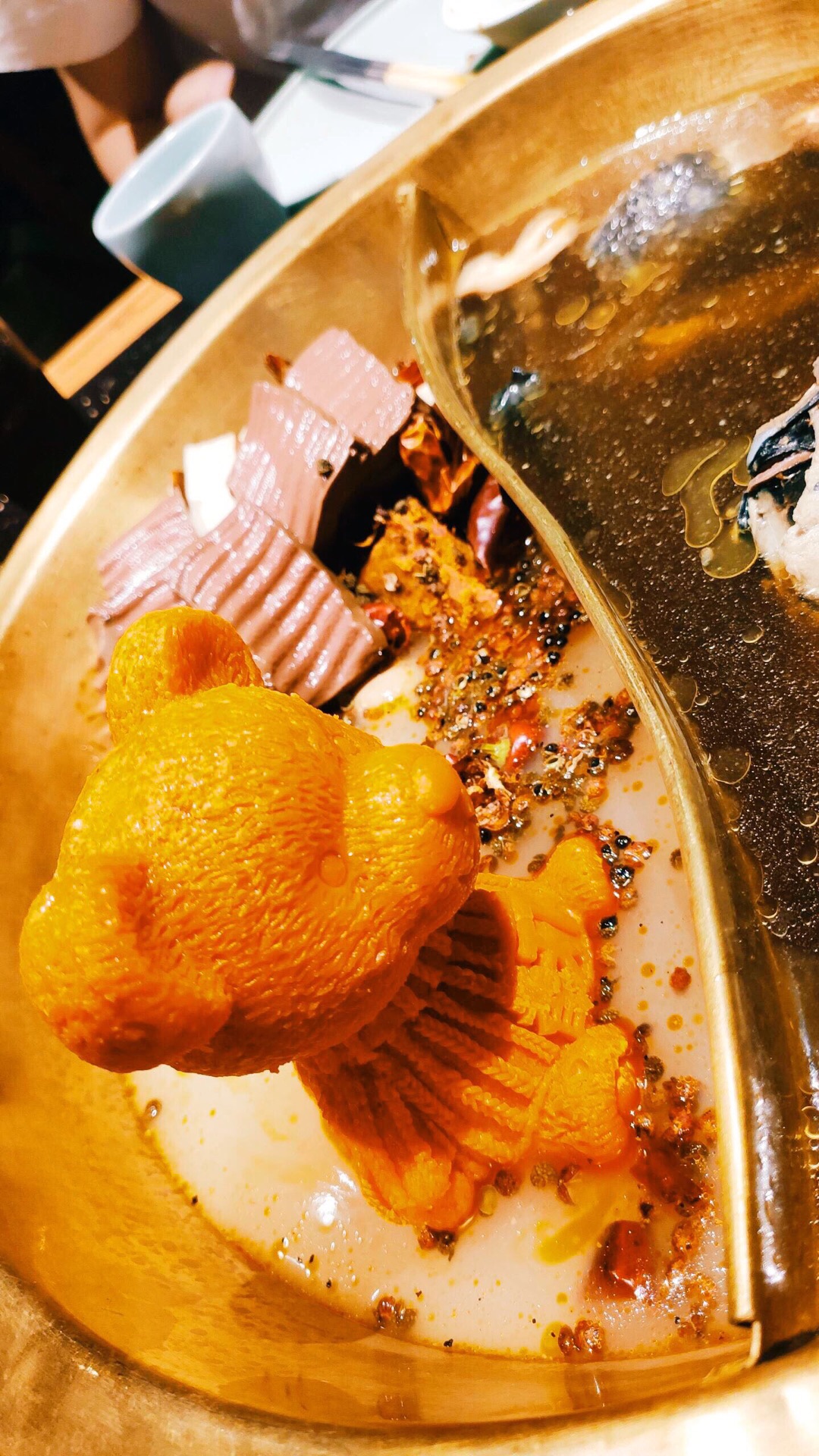 五角场|香天下火锅 住在五角场那么多年, 这家店看了那么多年, 然鹅从来没有进去吃过 碰巧今天不想加班, 这家不用排队, 于是和同事一起来吃火锅啦。 「锅底」小熊有点可爱 最后化了躺在那儿像洗澡 「一米牛羊肉」都不错,比较实惠 「红糖糍粑」是真的好吃!软糯极了 吃过糍粑里第一名 下次还来吃