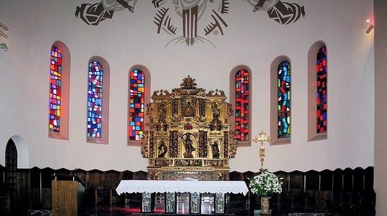 网友2019-09-08教堂就在路边,不是很大,进去看看还是非常漂亮的。 我去的那天早上,没有别人只有我们几个,感觉不错教堂就在路边,不是很大,进去看看还是非常漂亮的。 门口还有一个雕塑,似乎是一个女性在弹奏某种乐器。 我去的那天早上,没有别人只有我们几个,感觉不错。