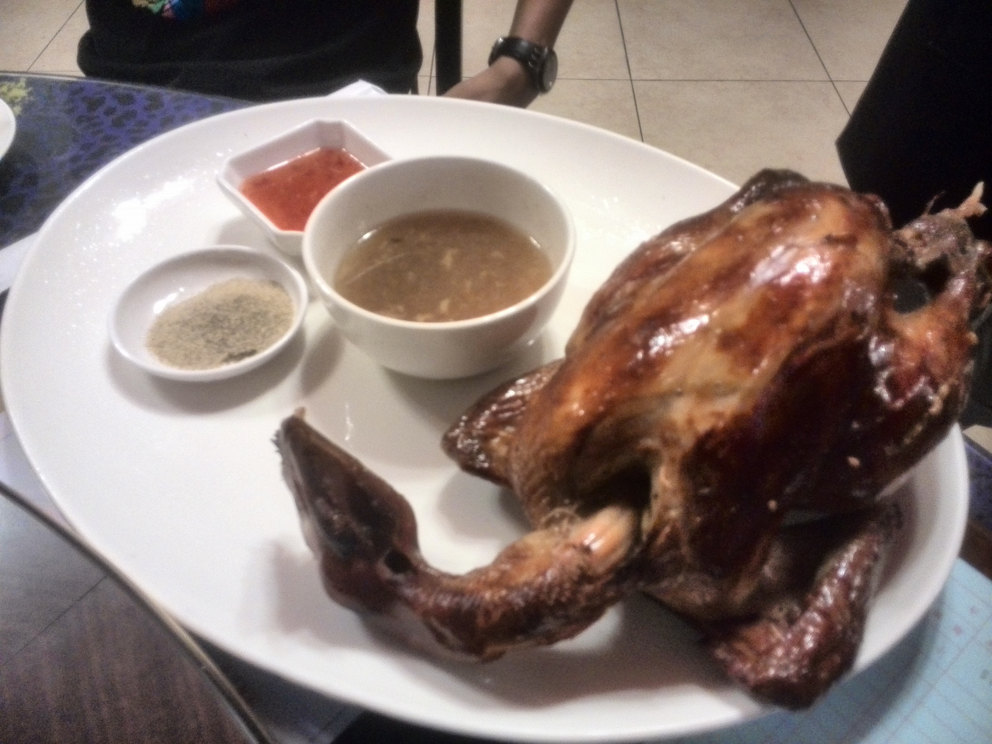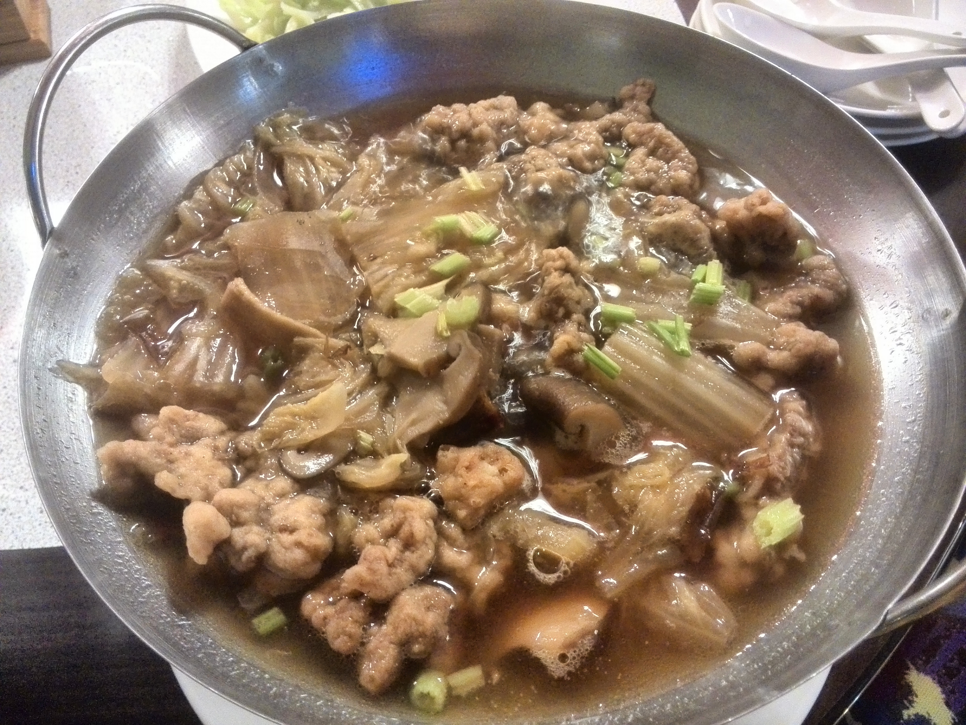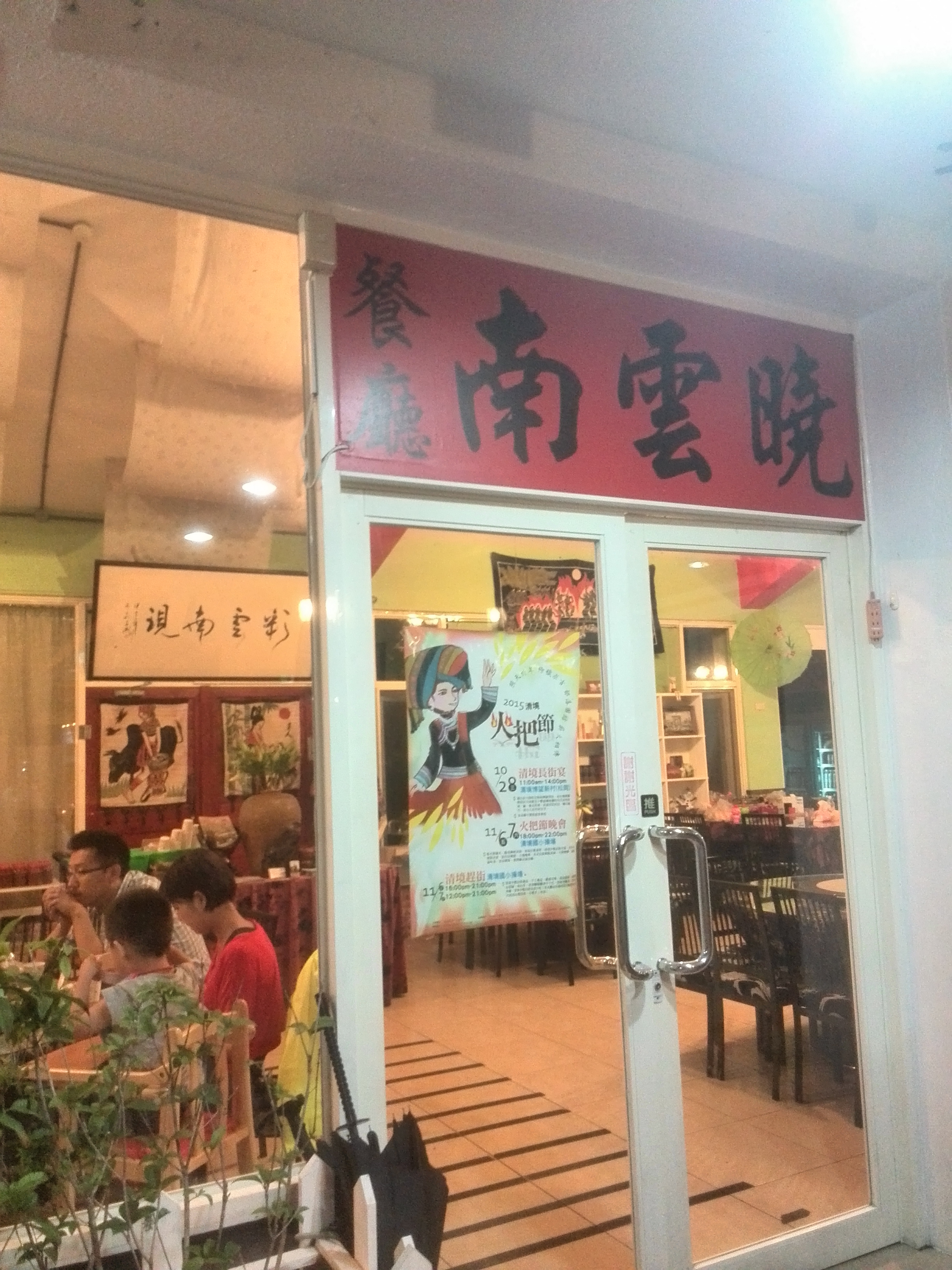 晚上住的清境农场,搜了一圈还是决定过来这家吃,其实因为历史原因,所以清境农场附近的都是云南菜餐厅。这家评论还可以的,也是吃好才发现原来来这家店吃饭是可以接送的,不过自己走也不远,当散步吧。招牌是烧鸡,新鲜现烤,其实味道闻起来不错,外皮也比较脆,不过唯一问题是台湾这边用的鸡种都是大种鸡,鸡肉比较不够嫩滑。点的是合菜,就是套餐,价钱固定,分量其实很足,不过说实在的,云南菜来说这家算是口味改良过所以不太好吃,还是偏甜。老板娘的服务还是不错的也很热情。