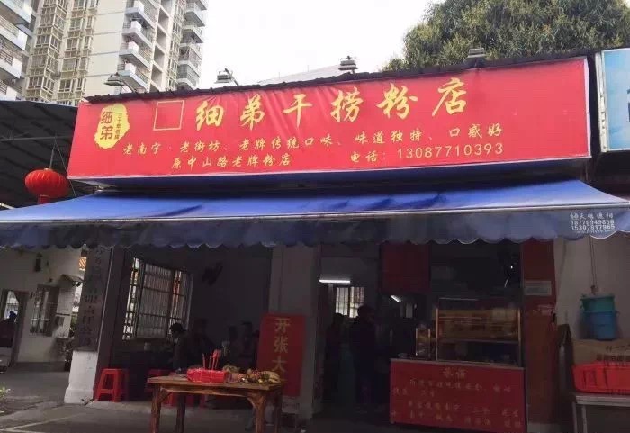细弟干捞粉店(原名:细弟街坊粉店)已经有三十年的历史了,老店在南宁的老街中山路临胜街上,由于旧...细弟干捞粉店(原名:细弟街坊粉店)已经有三十年的历史了,老店在南宁的老街中山路临胜街上,由于旧城改造老店已经搬迁到北大路上。 招牌干捞粉,爽口的干捞汁、丰富的搭配,老少皆宜,常常供不应求。