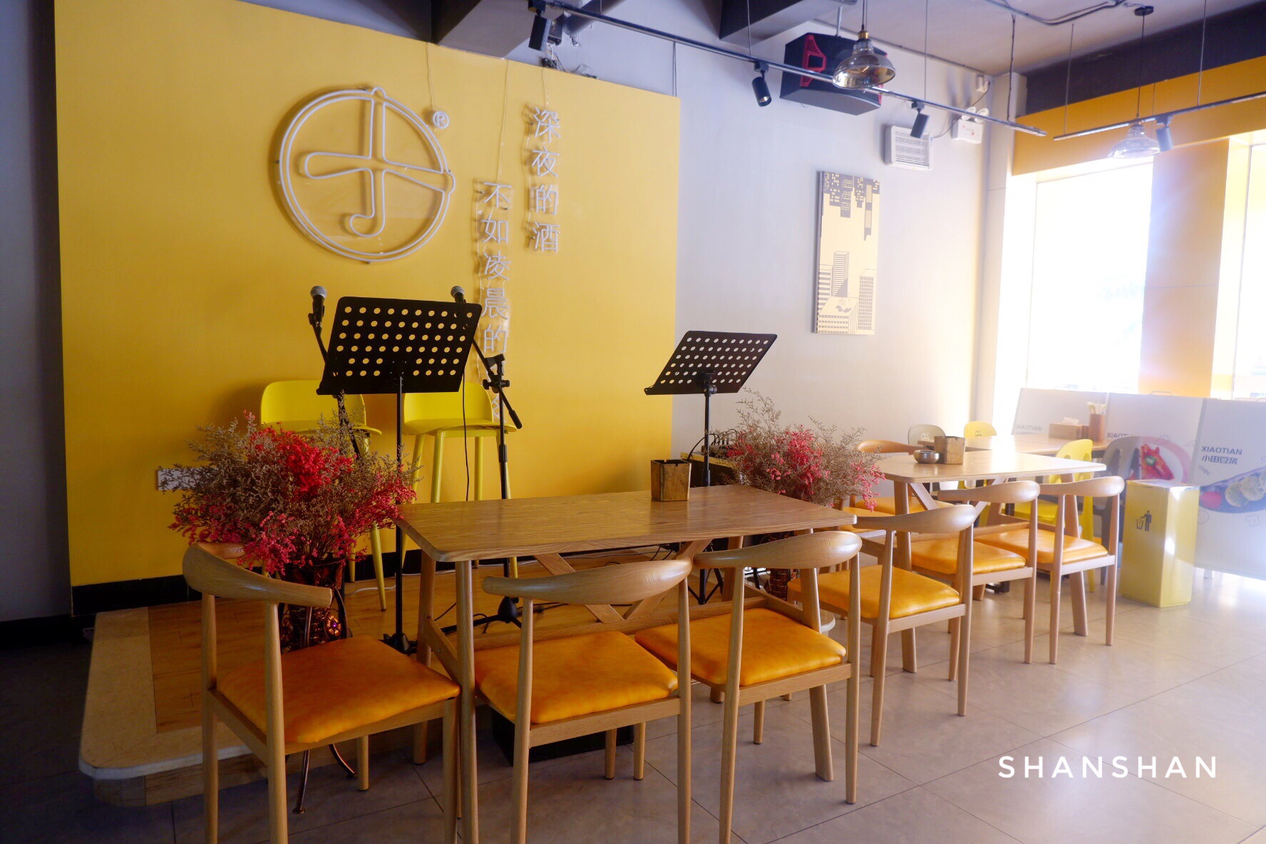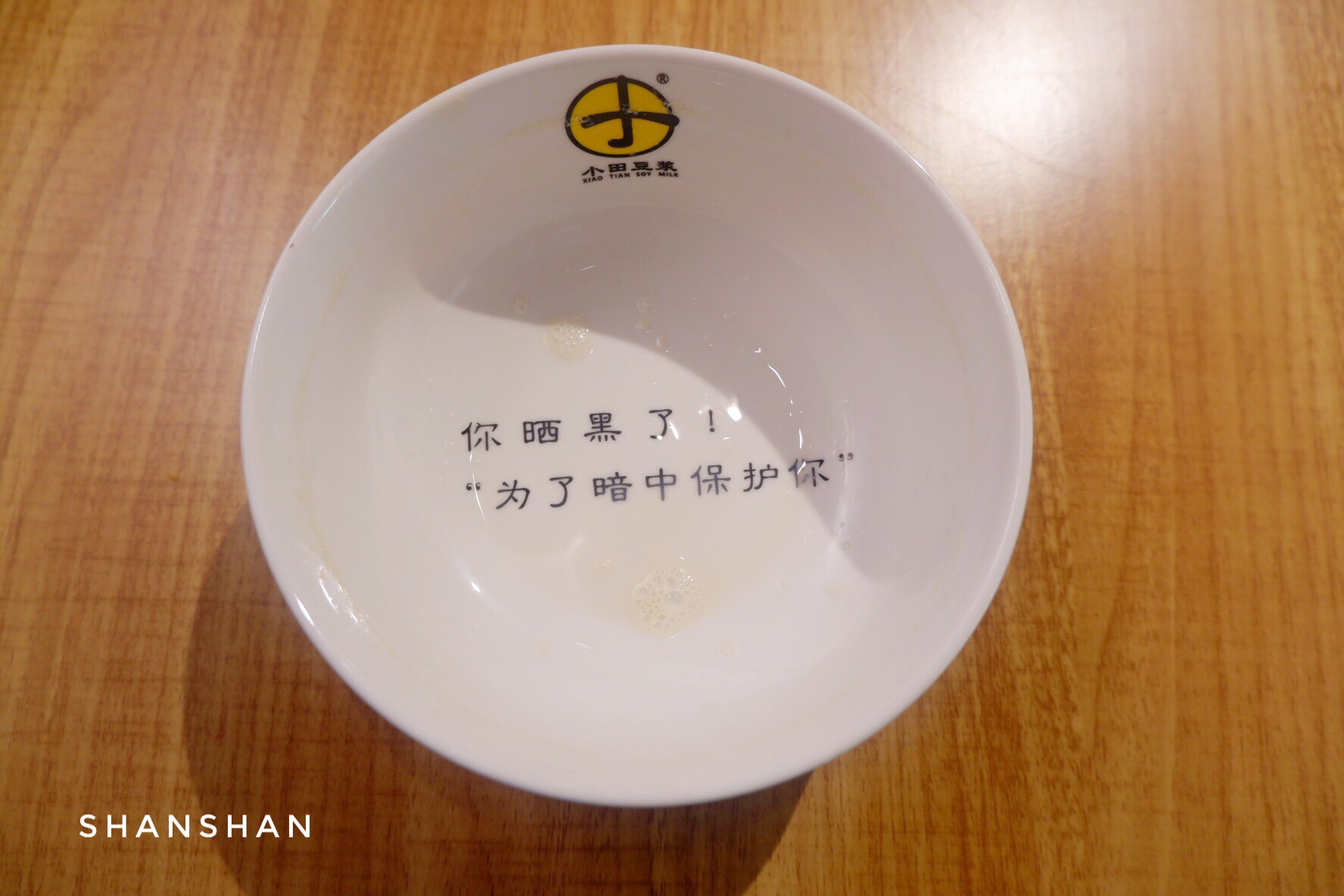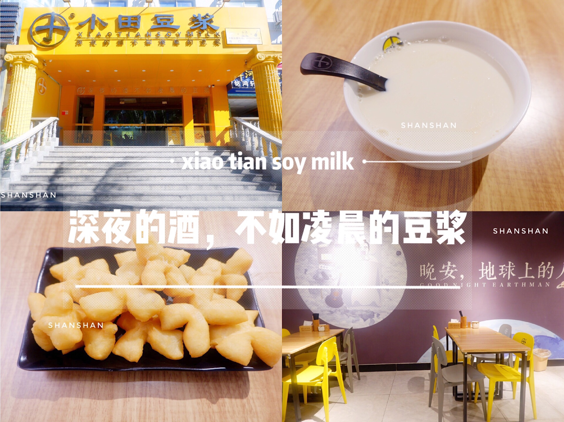 最近,新开了一家超高逼格的豆浆, 除了现榨现磨的豆浆,各种经典的潮汕炸物小吃之外, 还有舒适的环境加上歌手驻唱, 以传统潮汕豆浆为基础,精选十三种食材, 主打“传统潮汕豆浆+花式加料”。 【大体环境】 上下两层楼的格局,暖黄色的灯光再加上 整天黄色调的装修风格,让人觉得很舒服~。 多彩的椅子也让人觉得生动有趣。 精致的驻唱台, 增添了夜晚的魅力。 【菜品介绍】 香醇豆浆,5元一份。 豆浆里面可以加其他材料的,就好像喝糖水一样,好大一碗 上桌的豆浆加糖不多,甜度很低, 还可以自己再加糖,甜度自喜, 豆浆稍微放置一会儿,表面就会凝结出一层豆皮 如果再配上那么几根油条,那更加完美~ 小油条,7元一份 喝豆浆没有油条,那是没有灵魂的, 它家的油条短短的很mini, 而且还是小蝴蝶形状的, 一口一块,吃起来超方便! 一份小油条大概10个一盘, 一口就能干掉一个, 蘸上豆浆,油条更加饱满入味了。 【店铺特色】 豆浆喝到见底的时候,还会意外地被 “土味情话”撩到! 碗底还有字,我的这碗是 你晒黑了,是为了暗中保护你 这设计也是很用心, 每次把豆浆一饮而尽的时候, 都会被撩得猝不及防~ 【推荐餐点】 香醇豆浆、小油条 【总体评价】 深夜的酒不如凌晨的豆浆 豆浆油条,让人一天元气满满 【人均消费】 15元左右