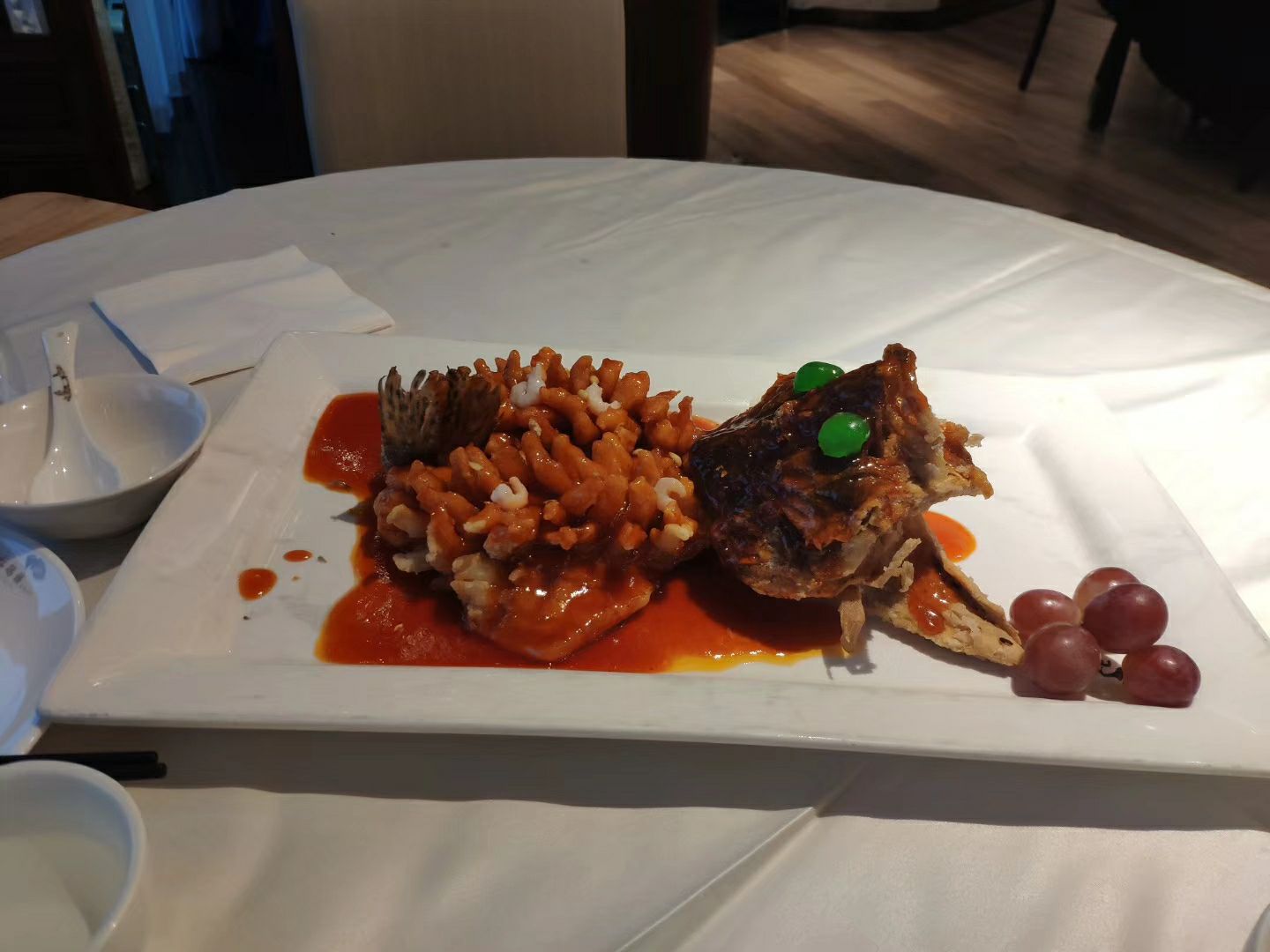 松鼠鱼和鳝糊都很好吃,生煎的馅好吃,但是汤汁稍微少了一些总的来说不错,美中不足的是餐具,松鼠鱼...