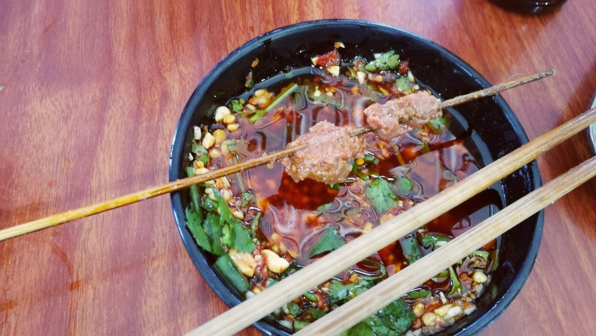 到味道很好,不是成都串串的那种油辣感,这家感觉以香为主,没有那么刺激,很实惠,牛肉一串两坨,很...上过舌尖上中国,真的不错,环境一般,到味道很好,不是成都串串的那种油辣感,这家感觉以香为主,没有那么刺激,很实惠,牛肉一串两坨,很嫩,很入味,蛋炒饭干香不油,很好吃!