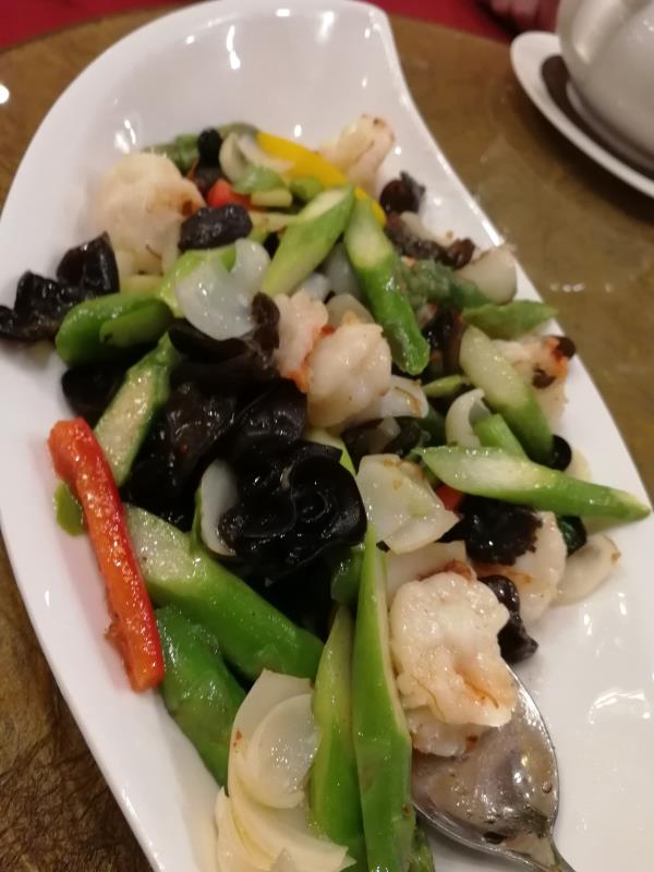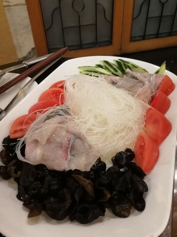 过年与朋友来中酒吃饭,原本想吃的几个菜都因为过年期间暂时停出,于是就点其它的特色菜。 比较推荐的菜是桂花蟹肉炒瑶柱,粉丝吸收了主要的鲜味,还有蟹膏,味道很不错。 虾球炒芦笋,虾球也是比较新鲜爽口,大颗的。 生炒糯米饭,软糯适中,味道刚好。 还有个鱼片,忘记叫什么名字了,现场制作,鱼是已经去骨,只剩下鱼肉,服务员把上汤预热,放粉丝,丝瓜,番茄,云耳等等的配料,最后再放鱼片,滚几下就上碗,刚好可以分到6碗,鱼肉鲜嫩,但汤底稍微咸了少少。 总体味道还是不错的。