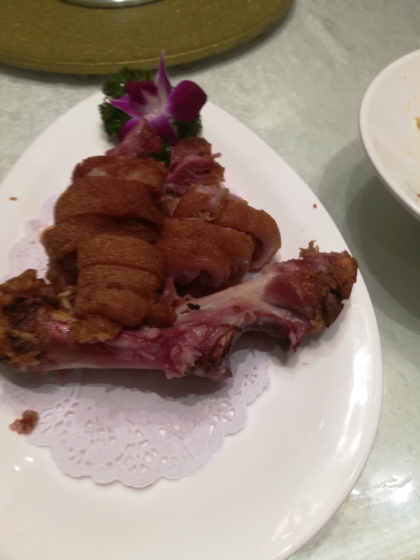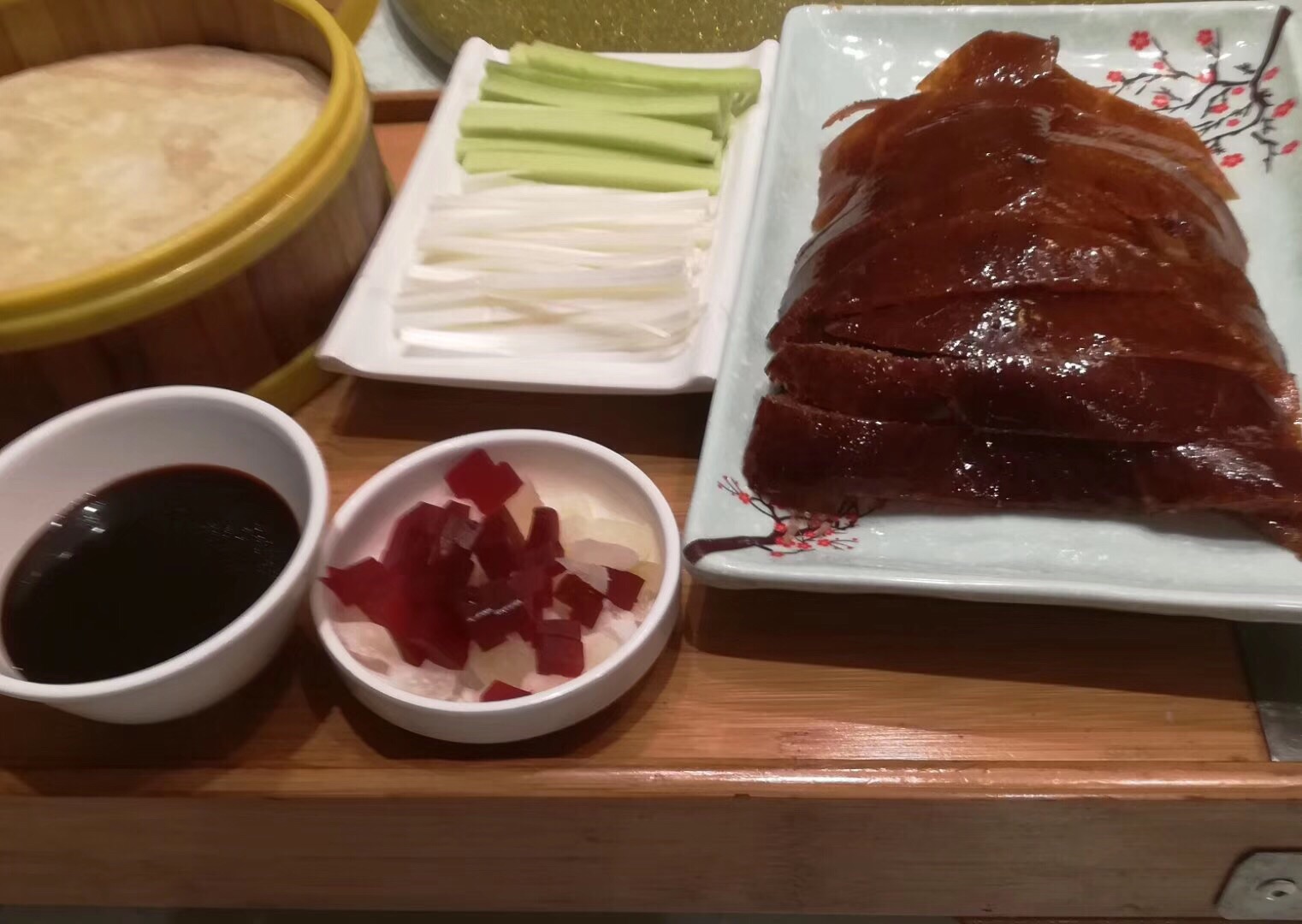 好吃哦去红城阁吃饭,点了几个菜,拍照的有烤鸭,红膏蟹,咸肴蹄等等,烤鸭上来是热的,京葱,黄瓜蘸酱再放一片鸭皮然后用薄薄的面饼抱起来吃特别好吃,嘴巴里有京葱的香味,烤鸭的鲜香,黄瓜的清口浓郁的酱味。好吃哦。