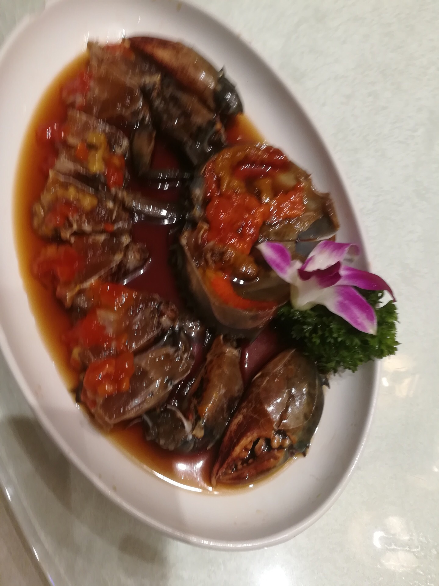 网友2019-09-13好吃哦去红城阁吃饭,点了几个菜,拍照的有烤鸭,红膏蟹,咸肴蹄等等,烤鸭上来是热的,京葱,黄瓜蘸酱再放一片鸭皮然后用薄薄的面饼抱起来吃特别好吃,嘴巴里有京葱的香味,烤鸭的鲜香,黄瓜的清口浓郁的酱味。好吃哦。