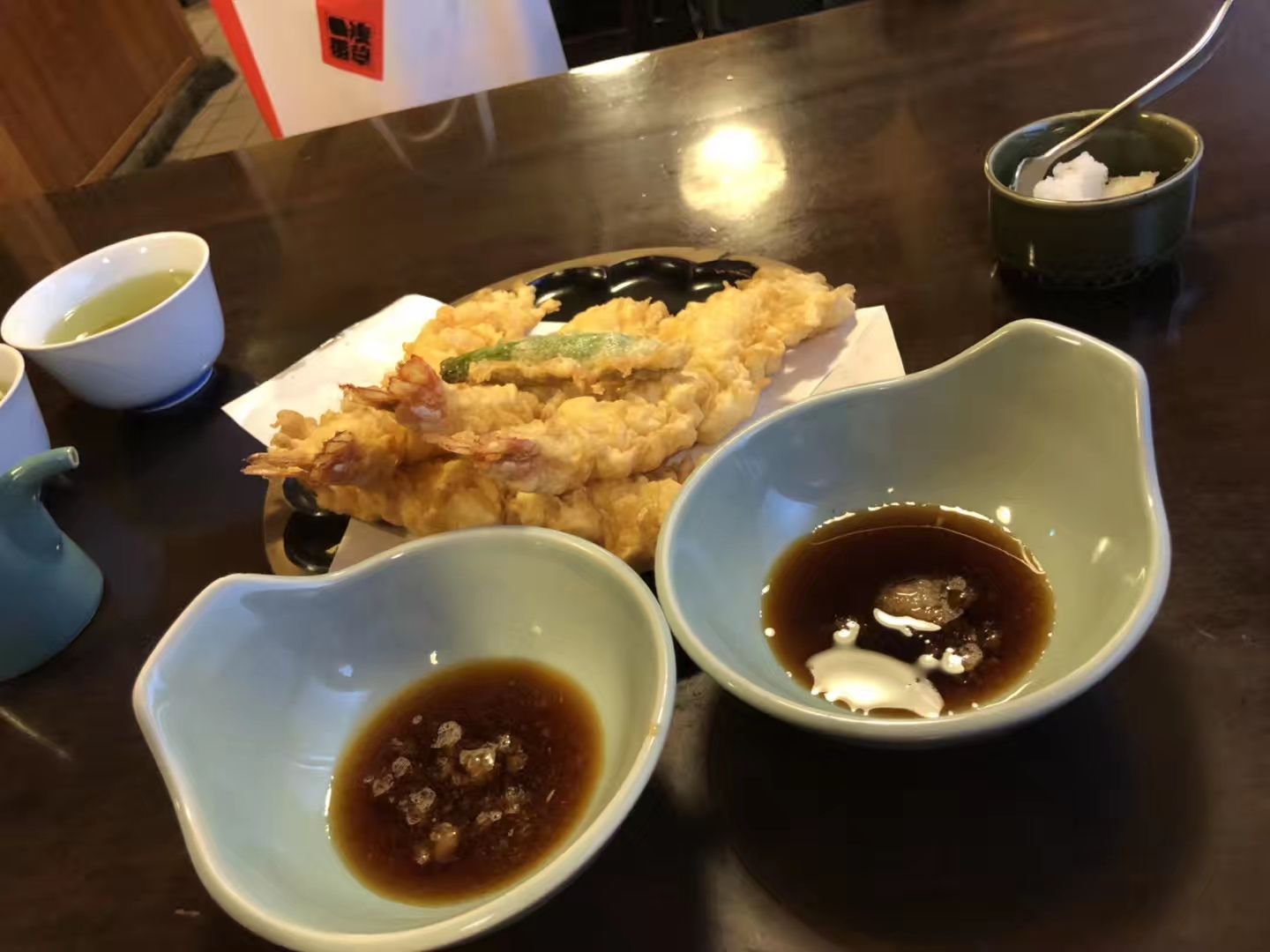 ...餐厅,一进来就点了一壶绿茶,味道非常香醇,还点了天妇罗,炸的很脆,还有三文鱼刺身,也超级新鲜的当地非常不错的一家日本料理餐厅,一进来就点了一壶绿茶,味道非常香醇,还点了天妇罗,炸的很脆,还有三文鱼刺身,也超级新鲜的。