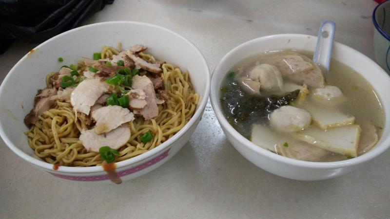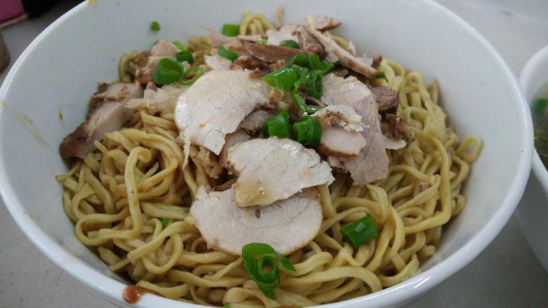 汕头老区的小食店装修都是比较简陋,平凡朴实,开放式的厨房,一碗碗手工制作的干面正在新鲜出炉。 爱西干面是闻名汕头的一款潮味小吃,也是“老字号”名店。还没有了解清楚这里有什么吃,就立刻有服务员上来招呼点餐了,看了墙边贴满“爱西干面套餐”的餐牌,20元一份, 一碗捞干面条,配一碗风味汤,要了一份尝尝味道。 很快一碗热腾腾,香喷喷的潮式干捞面和风味汤就呈现上来了。干捞面上摆放着几片卤好的猪肉,捞面的酱汁,再晒上几粒葱花。吃之前要把酱汁与面搅拌均匀,猪肉味道一般般吧,但面吃起来口感好,富有弹性,有筋道,搭配店铺的独制酱汁捞来吃风味更佳。酱汁主料应该有卤汁、芝麻酱和沙茶酱等多种酱汁混合再一起。很好吃,加上比较肚饿吧,很快就清碗了。吃完面再喝一口风味汤正好可以清清口腔内的咸味,这汤的料也挺多的,有鱼腐,鱼皮饺,墨鱼丸等等,都是手工制作的,一面一汤的搭配刚好。