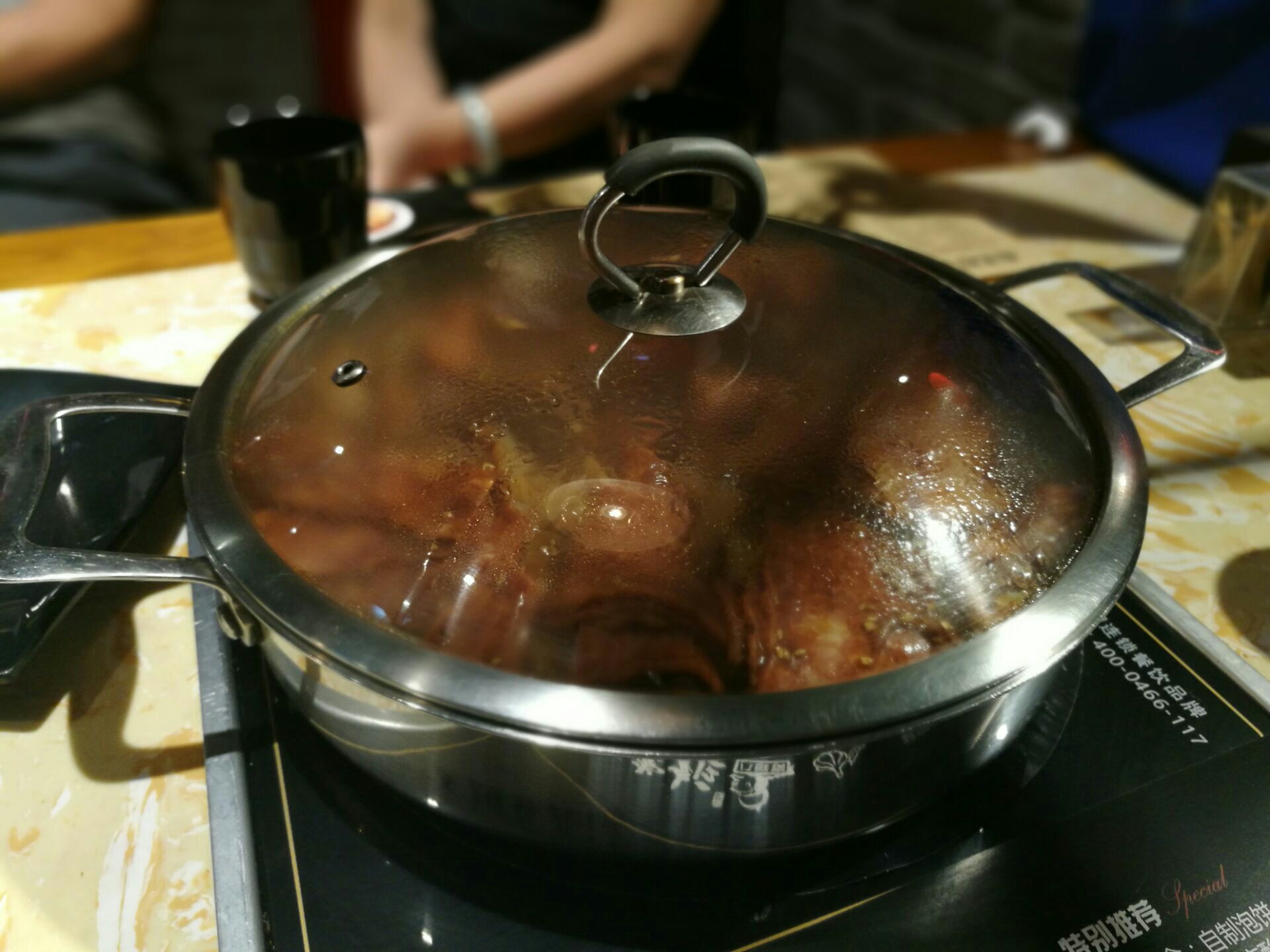 类似帝都连锁的黄记煌焖锅,都是各种酱料各种肉类焖锅为主,点的是组合拼锅,除洋葱,胡萝卜,白薯,柿子椒等免费素底料外至少选四种肉类主料,选得是龙利鱼,鱿鱼,培根和鸡翅中,其中龙利鱼时间长乐都碎了,鱿鱼不错,培根一般般。这里负责点菜的有点岁数的女服务员是一个比一个凶,说今天节日大众的团购不让使,大众上都没说有这限制啊