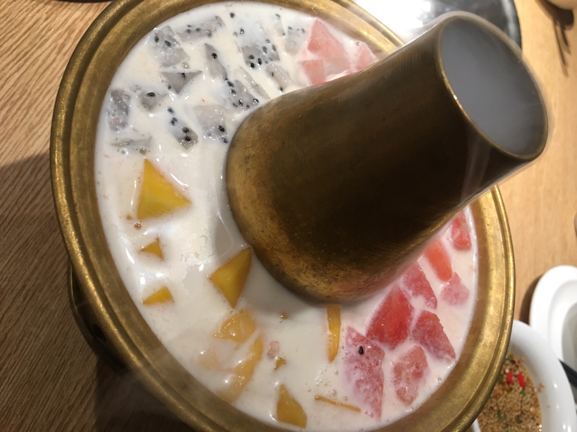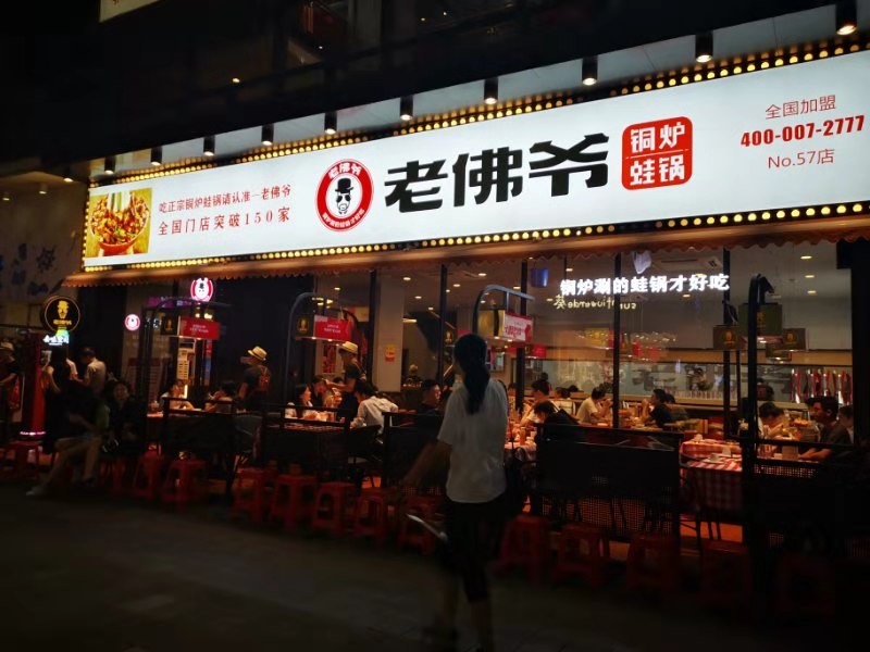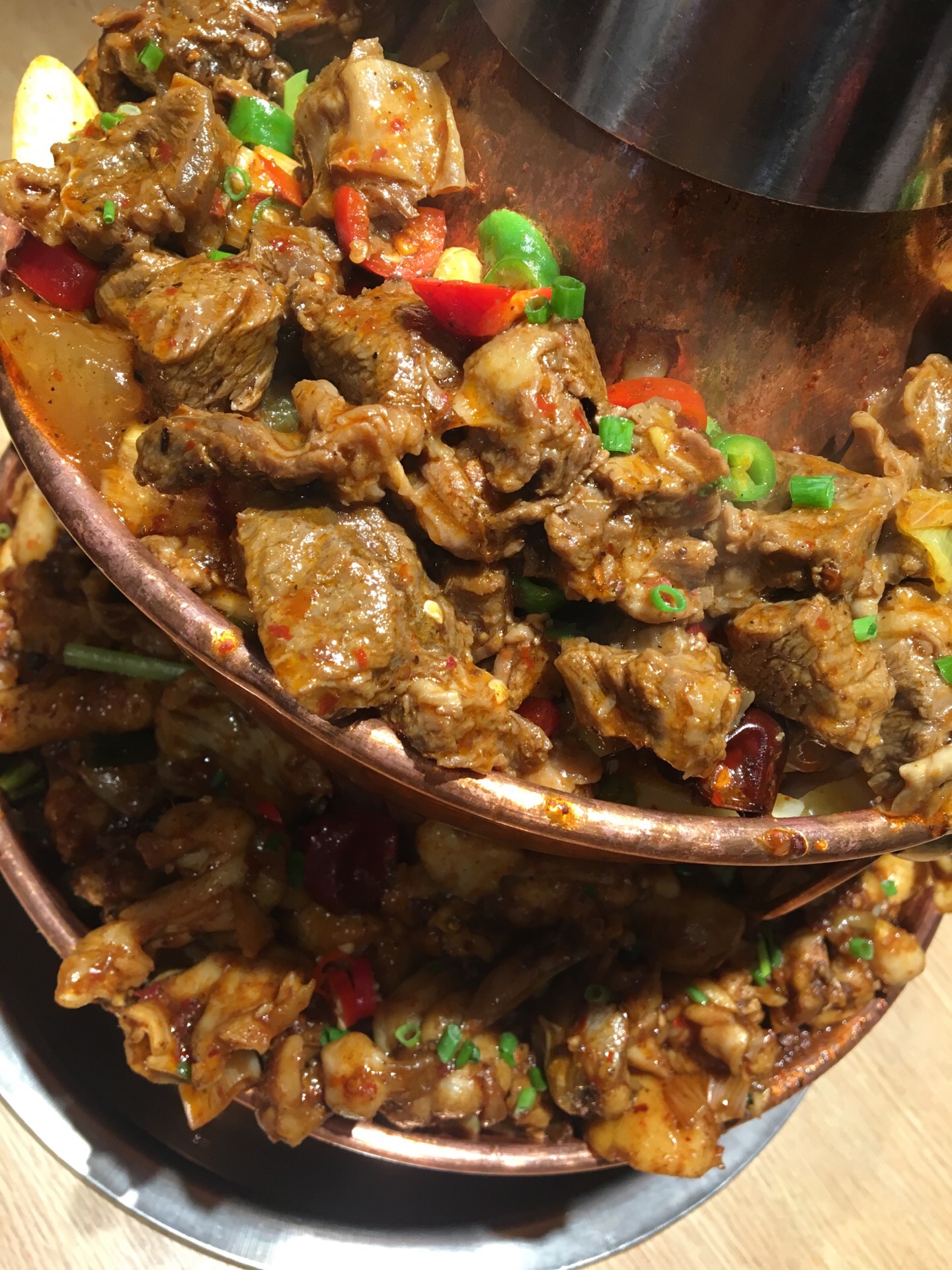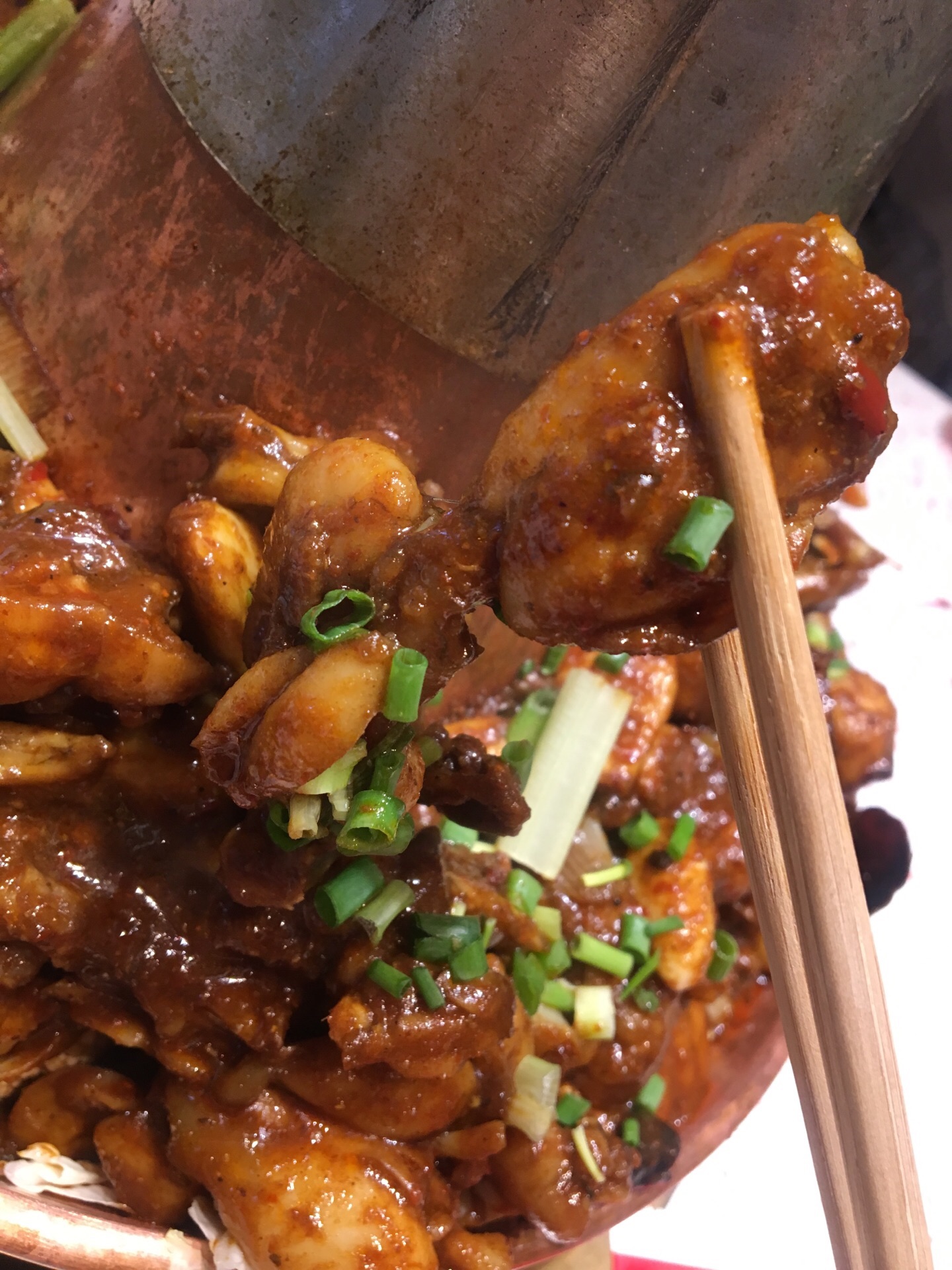 老佛爷做为网红炭火蛙锅的鼻祖,人气爆棚。牛蛙每日新鲜现点宰杀,肉质饱满鲜嫩,腿肉厚实,几乎是本吃货见识过的最实在的牛蛙个头。经过爆炒并收汁后的牛蛙,鲜、香、麻、辣香气四溢。锅里还有土豆、年糕、鱼丸、豆皮等配菜,分量十足,不但牛蛙美味,配菜都充分吸收了汤汁,超级下饭。除了牛蛙之外,听说本店还有四层的镇店之宝,每天销量!!!欲吃从速啊,简直恨不得多个胃,实力只允许我吃个两层锅,第二层的牛腩煮得特别软烂,并且是带筋的,质量上乘,尤其饱腹。饮料颜值也特别梦幻,餐后再来碗凉粉跟水果捞,太满足了,总之扶着墙出啦!