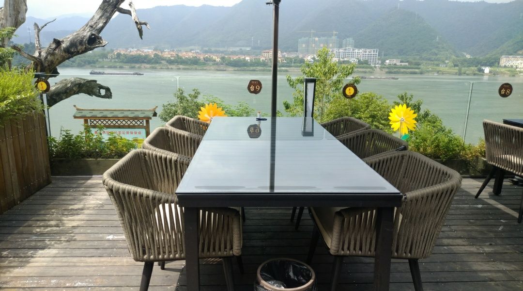 餐厅景色优美,江景花园餐厅,用餐的同时可以欣赏美丽得富春江,非常惬意。 停车方便,环境干净整洁,服务也是满分,上菜很快。 食物原材料时当地绿色食物,口感真的不一样,非常新鲜美味,河鲜时我的最爱,推荐德式牛排,高山养生鸡。