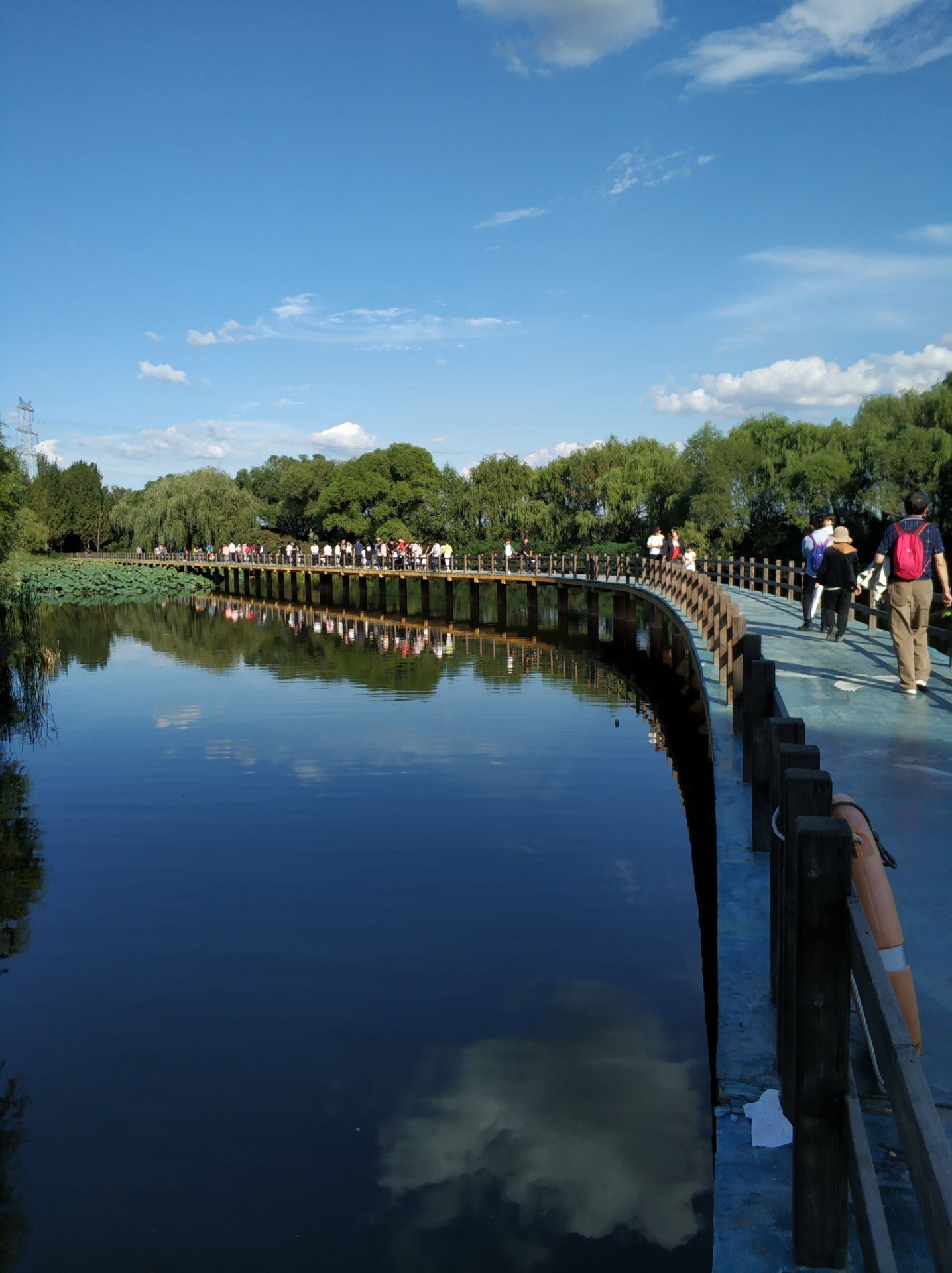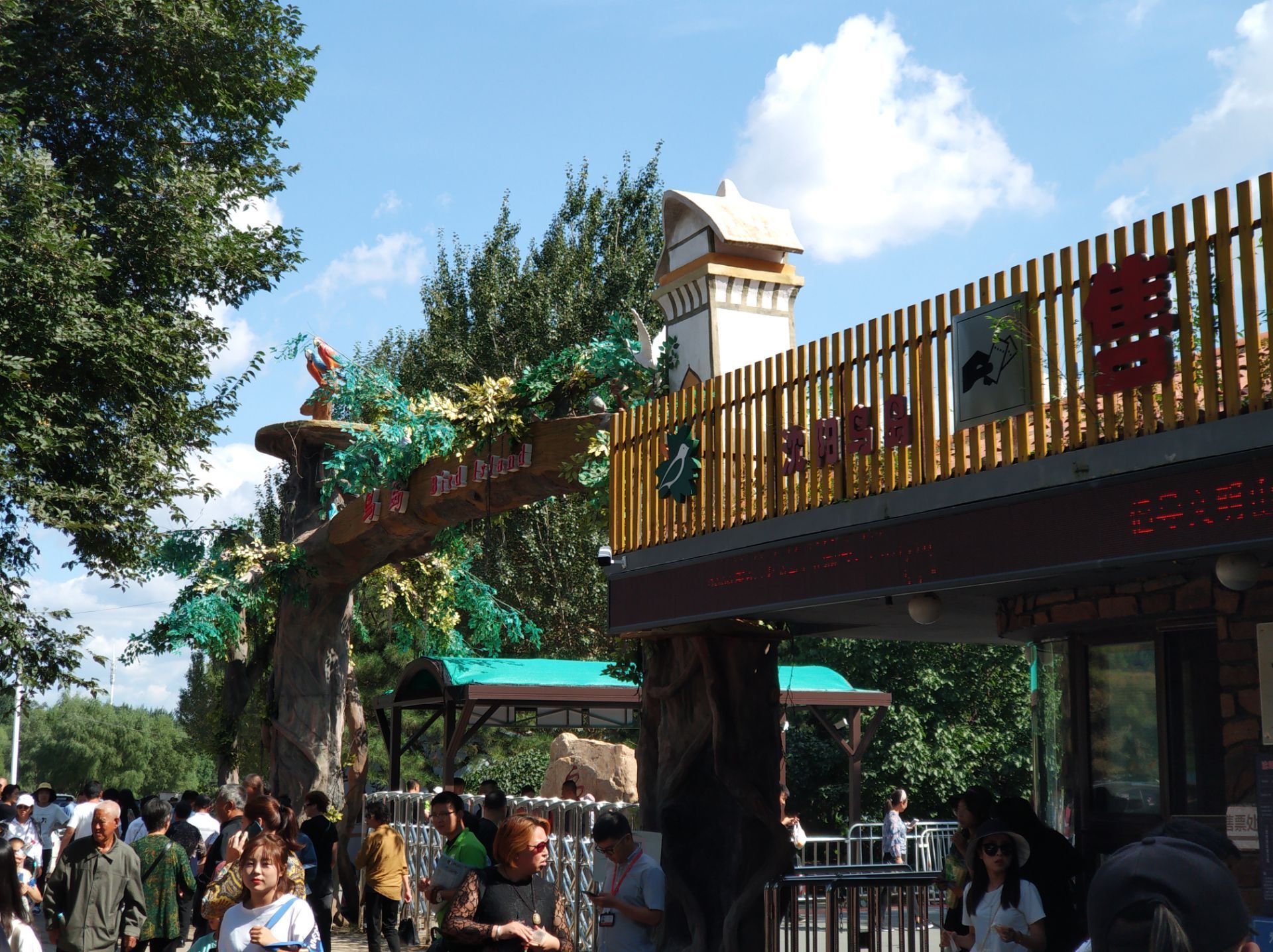 2019年09月14日,农历八月十六,晴。鸟岛人多呀!幸好园子够大,进园后不久,人员逐渐分散,减少了很多紧迫感,得以悠闲地游览。鸟岛,观岛自是重要项目。鸟从种类和数量上,都还不少;分布布局也比较合理。猛禽好像少了些。有一段不长也不高的玻璃栈道,仍然使一些人望而却步,有点儿意思。园中的湿地面积不小,道旁水中小鱼很多。园子总体设计和建设都不错,休闲歇息的地方很多,极适合全家人游览休闲。全园游览下来约三小时。门票30元,套票45元,我觉得值。