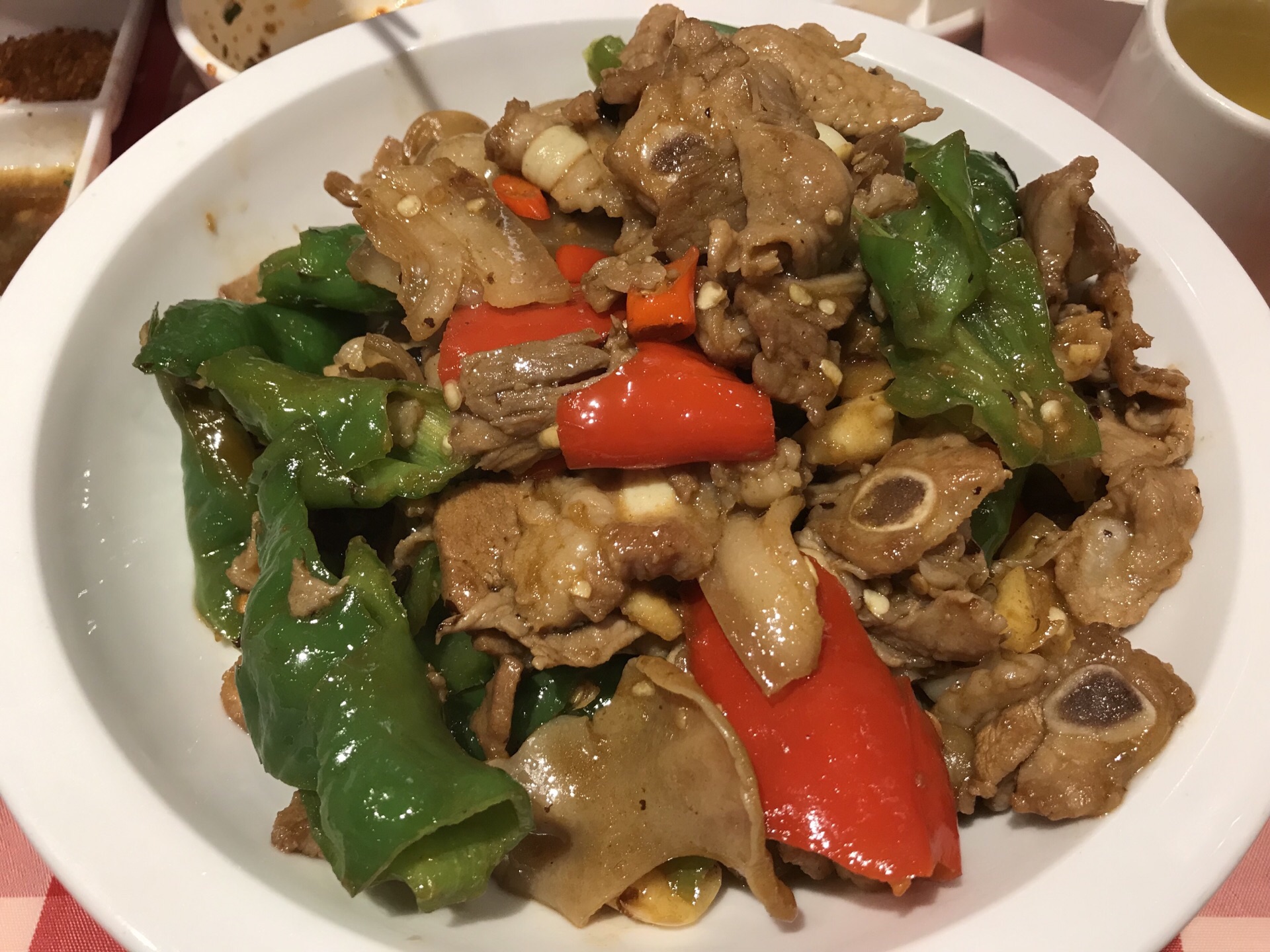 第一次来西贝这里吃饭,我们点了面筋凉皮,牛大骨,干锅大炒肉,还有羊肉串,肉夹馍。感觉还不错第一次来西贝这里吃饭,我们点了面筋凉皮,牛大骨,干锅大炒肉,还有羊肉串,肉夹馍。消费人均也不低,最后每人都有免费赠送的酸奶。感觉还不错。