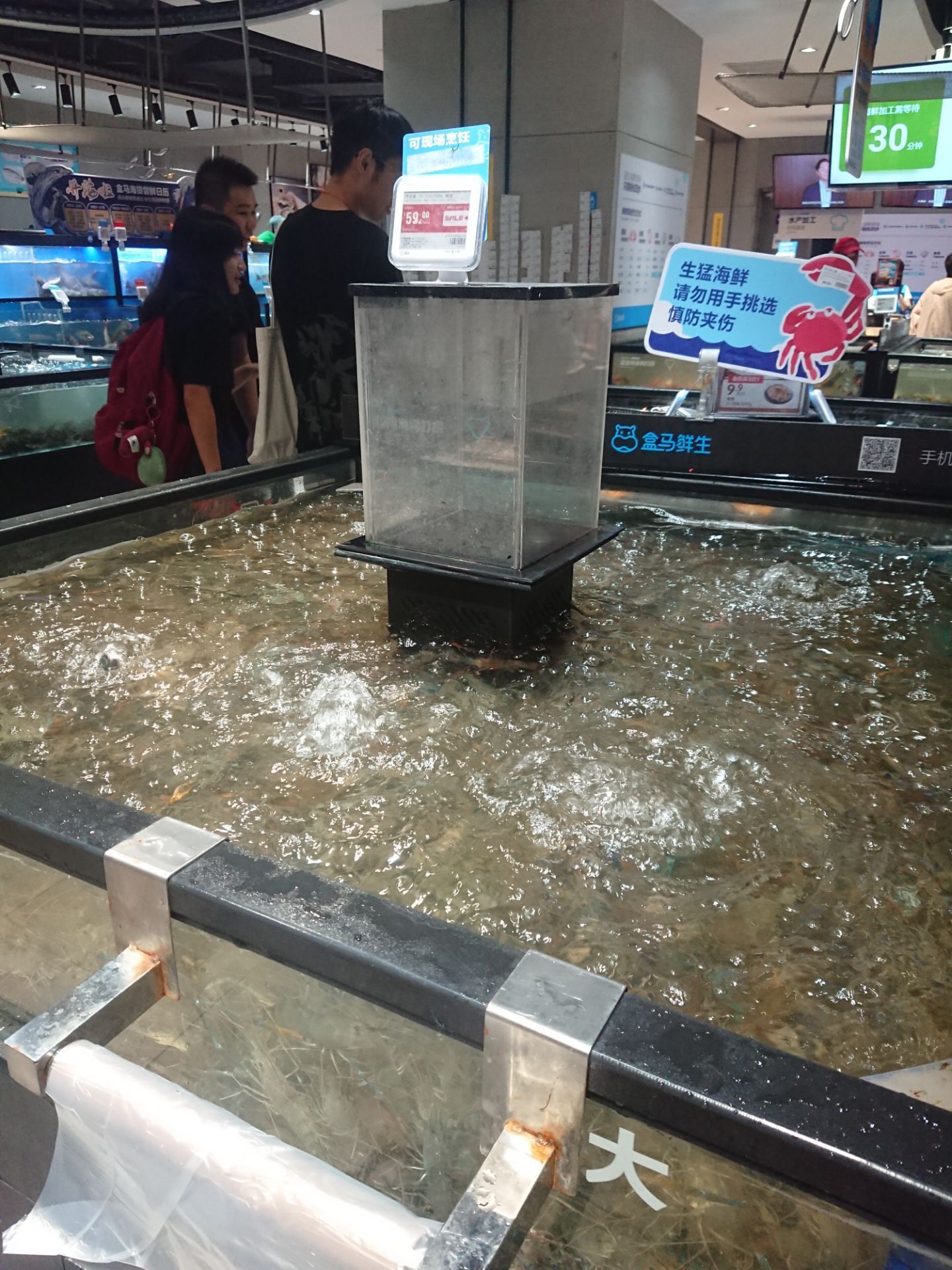 ...,当时刚开业的时候非常非常火爆,特别是周末的中午,如果你要等加工海鲜几乎等一个小时是非常的常态这家盒马鲜生的是广州市的第一家盒马鲜生,开业有一段时间了,当时刚开业的时候非常非常火爆,特别是周末的中午,如果你要等加工海鲜几乎等一个小时是非常的常态。