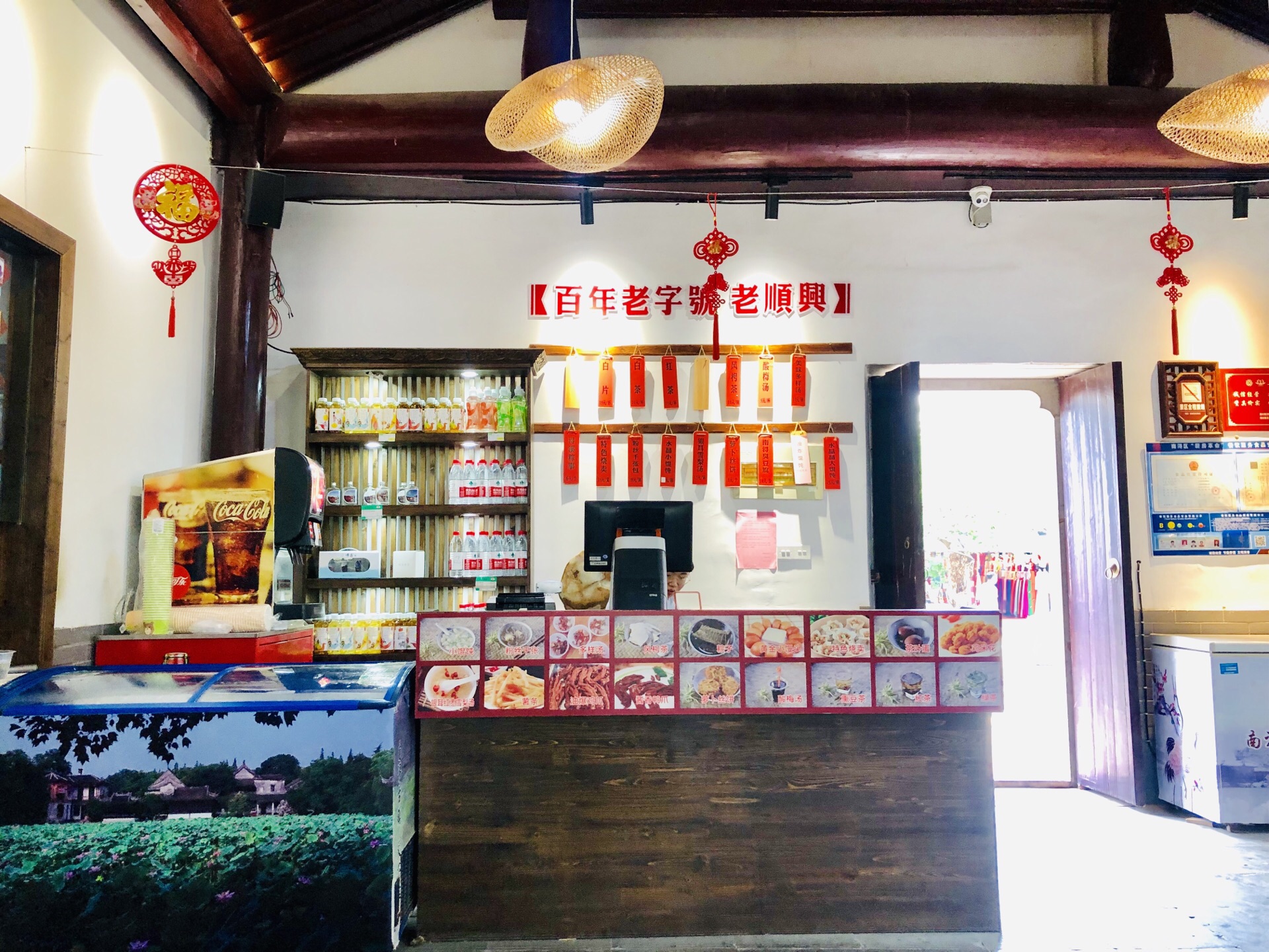 这是一个吃早餐的好地方~ 坐标:园林路288号(大红色灯笼下面) 环境:沿河的门面很小,广场那一面的门面大一些,不过最近貌似关着门,还是比较容易找到的。 里面装饰的也比较简单、古朴,有老字号的味道吧,方桌、长板凳,这些都是很久以前的餐馆标配了。 服务:阿姨态度还是很好的,只是人多了容易送错餐点。 「小混沌」 ¥12.00 皮薄馅肉很多,还是小馄饨的皮最好吃啊,里面的肉肉很多哦,不是那种小馄饨没有肉的,是有好多肉的这一类,不错[强]推荐这个早餐。 「多样汤」¥10.00 色素组合成的八宝饭配料+冰镇薄荷水 里面的蜜枣倒是真的许久没吃了,还蛮想念的,就是说里面有蜜枣,我就买了,后悔了,还是别点了。肠胃不怎么好的我,喝了一口毁了一天,刚喝就开始闹肚子,冰的过了,然后吃药都挡不住她的力量,最后午饭、晚饭都没吃……