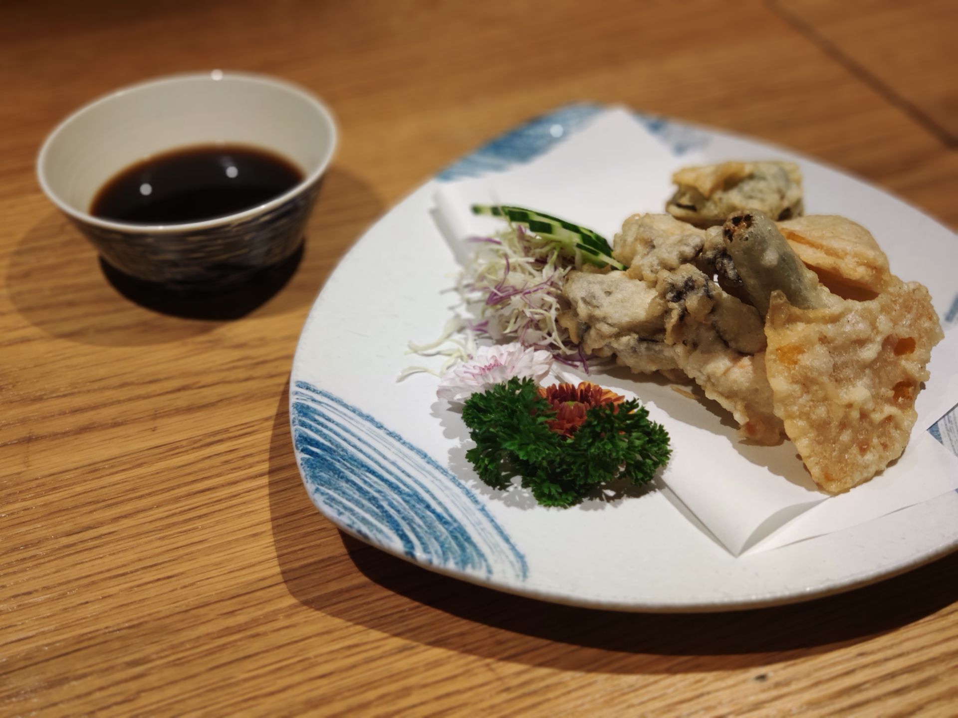 板前料理位于海沧税务后面的小巷深处,原色的装饰混泥土外墙,低调地在街尾宣誓着存在感。 柔软感、刚硬感、温暖感、冷漠感,矛盾又和谐,如同它的菜品,看似简单,实则充满灵气。 【小菜:日式小鲍鱼】 很贴心的壳肉分离,并分割成三块,不会出现撕扯的不雅吃相。汤汁淡淡的,恰好地衬托出鲍鱼的鲜美。入口清甜,口感脆嫩。 【手卷:当日特制手卷】 手卷很考验吃饭速度,酥脆的海苔很容易在空气中变得软烂。一定要上桌第一时间吃掉,咔吱脆,好吃~ 【刺身:刺身拼盘】 三文鱼、比目鱼、鲷鱼、北极贝、甜虾,搭配合理,可以尝试到不同的刺身,都很鲜甜。个人喜欢甜虾和三文鱼,很有满足感。 【蒸物:鹅肝蒸蛋】 可别小瞧这小小一份蒸蛋,内藏大乾坤。鹅肝、鱼籽、鱼糕、香菇、文蛤……鹅肝和蒸蛋一样嫩滑,蒸蛋融入了各色佐料的风味,鲜美异常。 【炸物:生蚝天妇罗】 万物都可天妇罗,不过还是第一次听说生蚝天妇罗。色泽金黄,外酥里嫩,薄薄的一层脆皮,香而不腻,很好的锁住了生蚝的汁水,鲜甜不腥。 【煮物:酒煮牛舌】 牛舌是有名的下酒菜。板前的牛舌是厚实的块状,入口鲜甜,软糯细腻,味道在咸与甜之间,回味有淡淡的酒香。 【主食:荞麦冷面】 荞麦面经过冰镇,口感更为Q弹,味道酸酸甜甜,淡雅温润,慢慢咀嚼间可以吃出荞麦杂粮的甘甜口感。 一家深巷中的情怀日食店,有着新鲜的食材,和用心的烹饪。