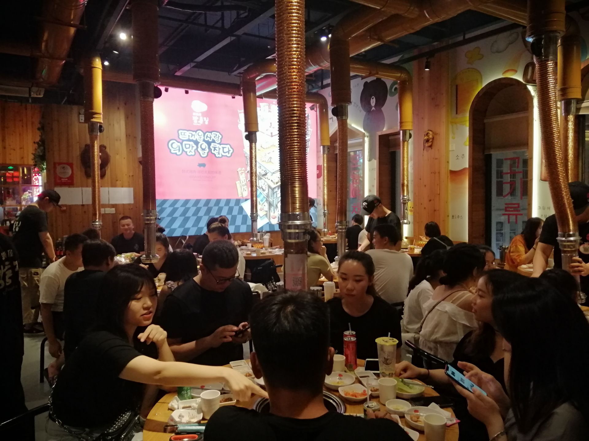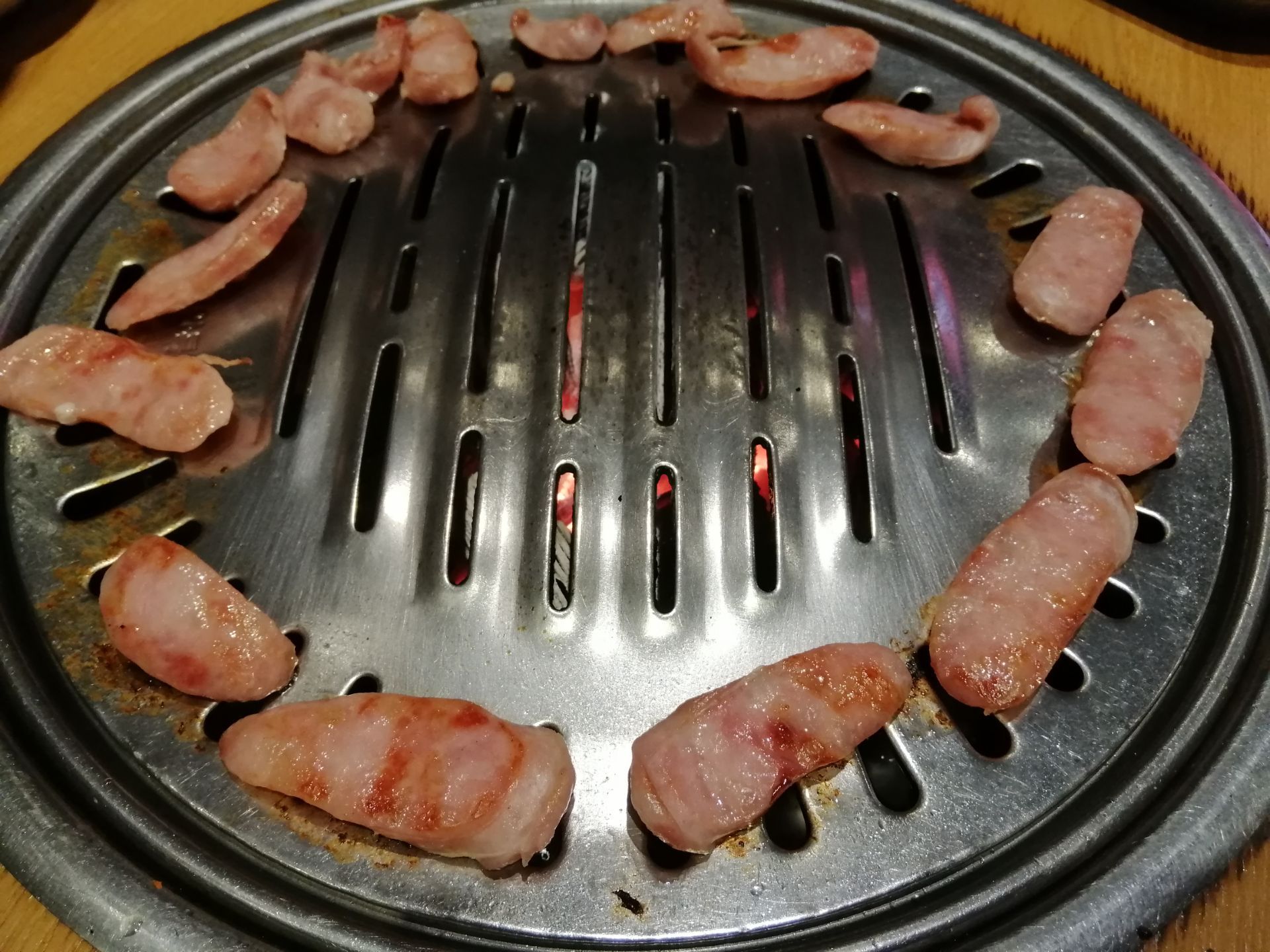 店面其实挺大的,但饭点人超级多,不愧是网红的韩国烤肉店。台湾香肠也不错,肉超饱满