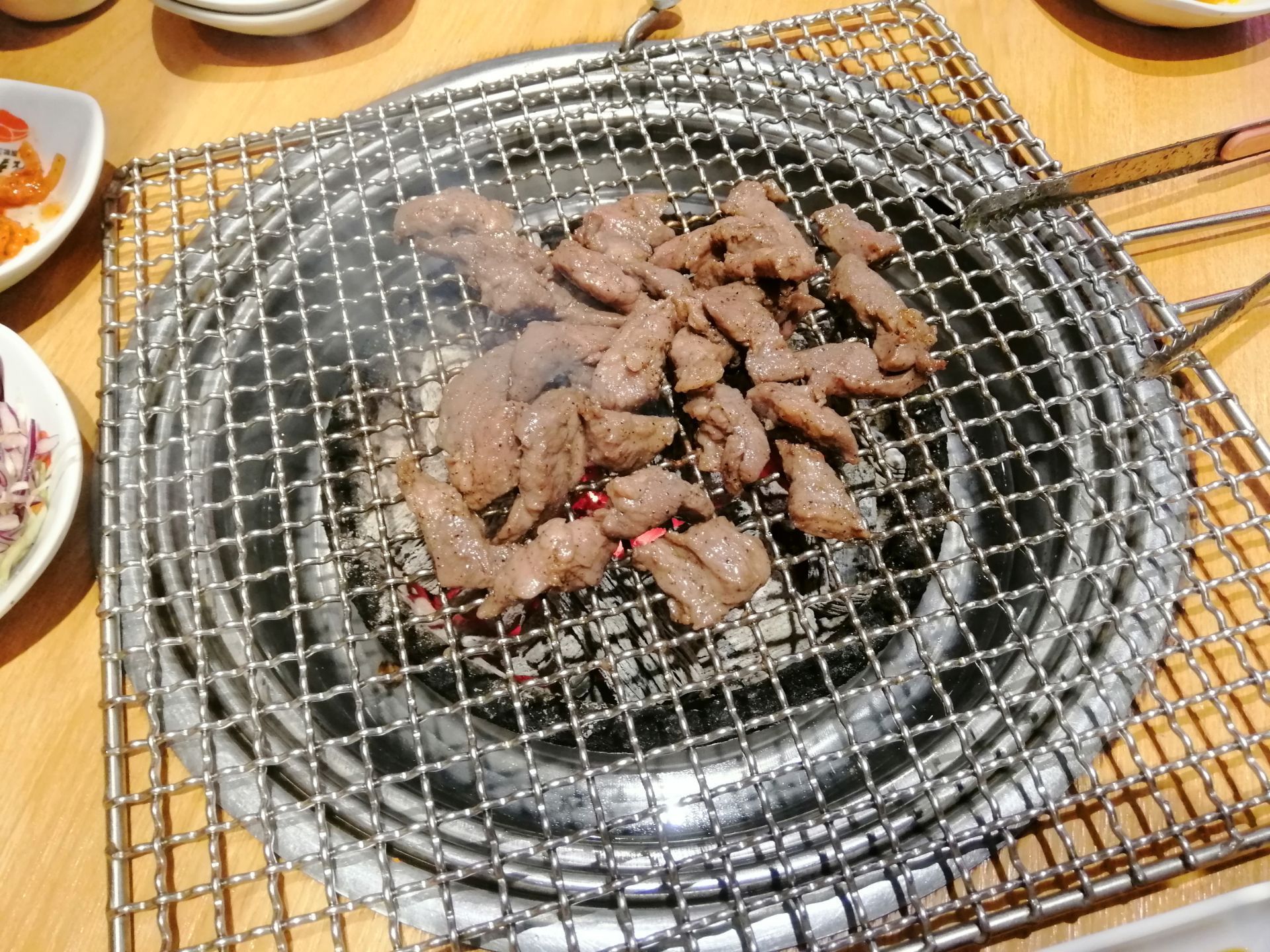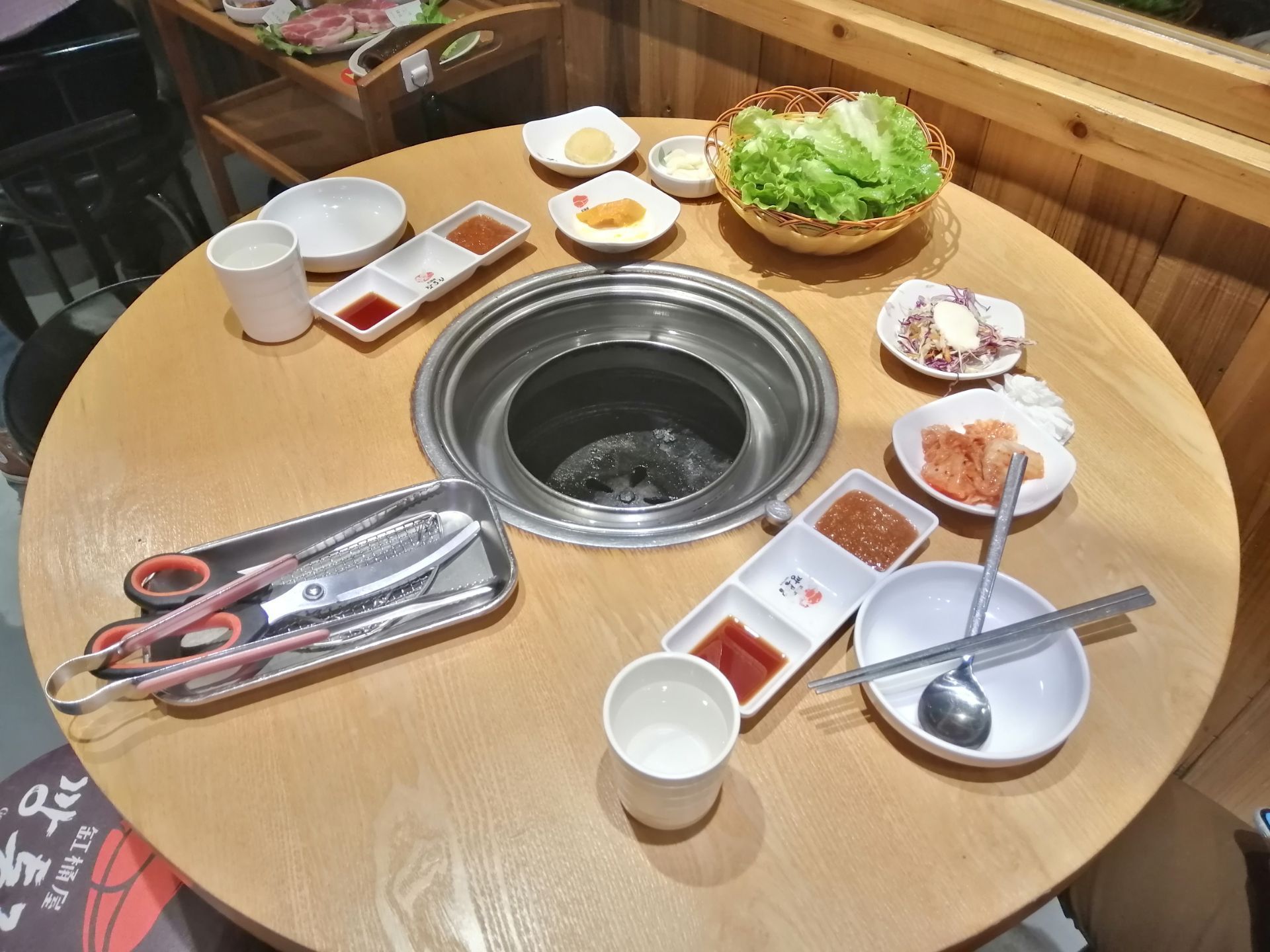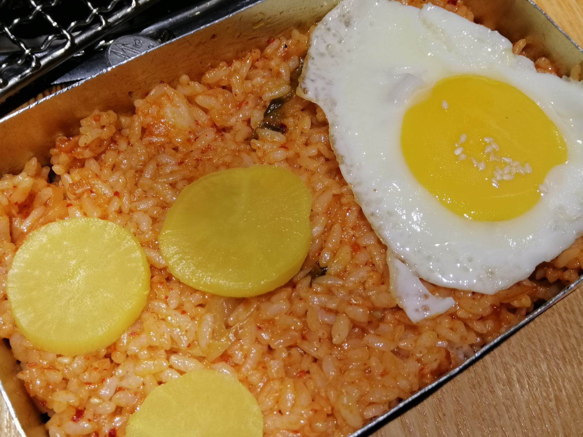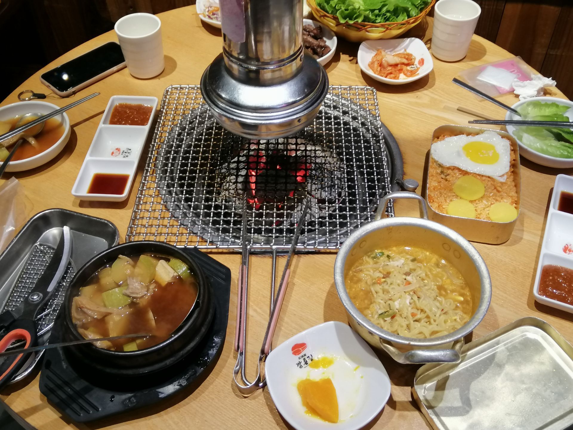 地址就在中华城北区3楼。店面其实挺大的,但饭点人超级多,不愧是网红的韩国烤肉店。小菜超级丰富,吃完可以无限量加,最爱土豆泥,超好吃,一口气吃了2个。肉类点了推荐的护心肉,一份挺大份的,有小姐姐帮忙烤肉,绝对烤得棒棒哒,搭配上泡菜,裹在生菜里,一口下去超级满足。台湾香肠也不错,肉超饱满。大酱汤内容丰富,有点微辣,里面有花蛤,土豆,窝瓜等,味道不错。吃惯了石锅拌饭,特意点了泡菜炒饭,上面有颗半熟的荷包蛋,饭还不错,加了泡菜,微酸挺开胃的。
