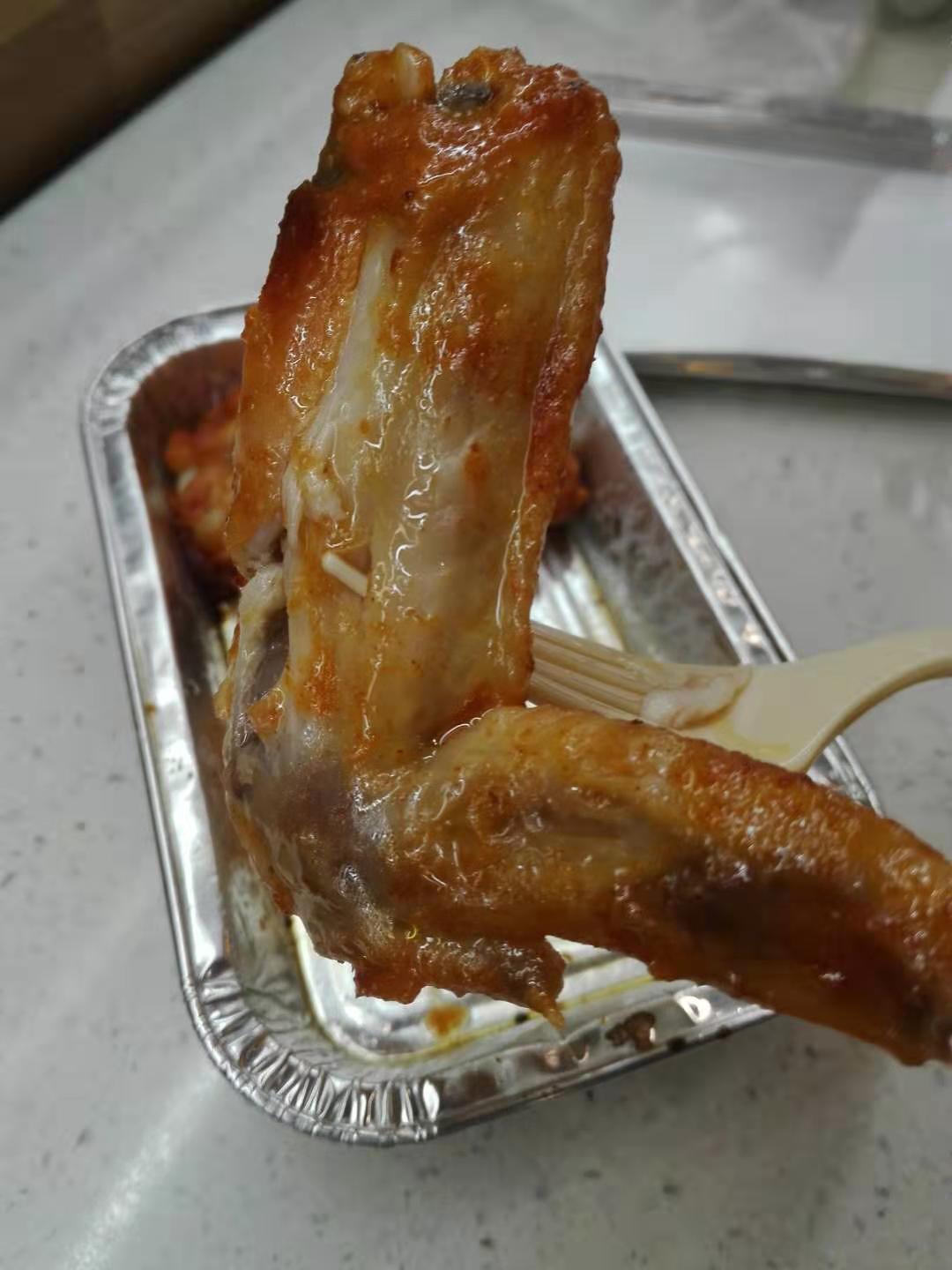 中秋假期中,晚上在这里吃个鸡翅当宵夜,店里客人不多,但看店员一直很忙,估计是外卖很多,等了半个多小时,去问店员好像才惊起还有我的一个订单,忙不迭地道歉,唉,大过节的就算了。“奥尔良鸡翅”味道还不错,整一个鸡翅分两块,“鸡翅根”和“鸡中翅鸡翅尖”,调味比较好,嫩热嫩热的,口感真不错~