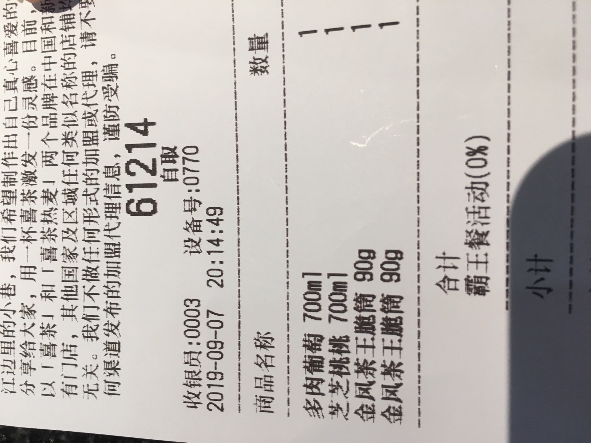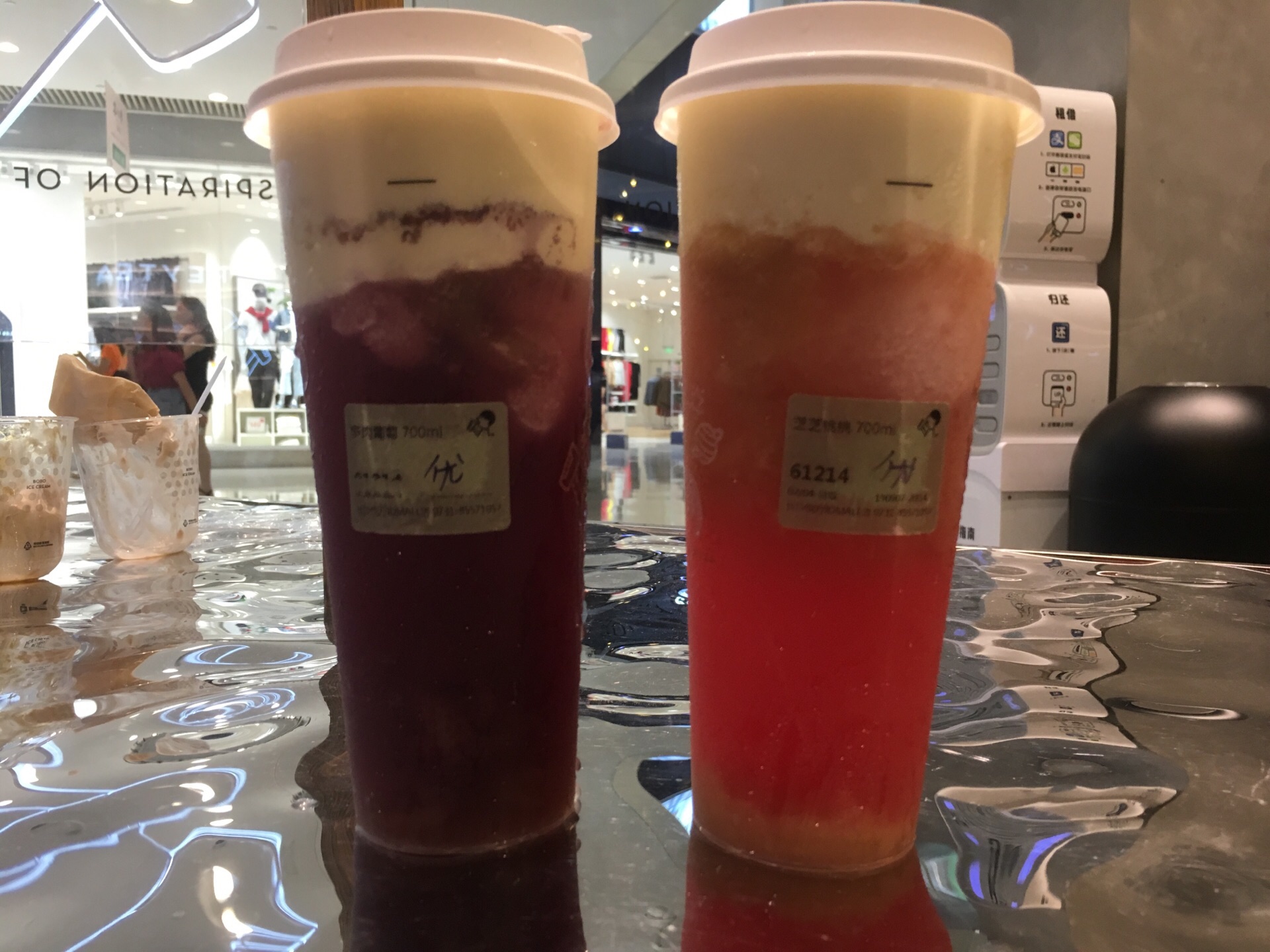 看网上点评,名气很大的甜品店,晚上到了才发现,确实人多,点餐加取餐花了一个多小时,我们点了多肉葡萄和芝芝桃桃,金凤甜筒,甜筒可以先领,茶味十足,比较喜欢,饮料就等的久了,如果不是点好了餐,都想放弃了,太费时间了。拿到多肉葡萄和芝芝桃桃尝了下味道,葡萄稍酸一点,桃桃比较甜,更好喝些。