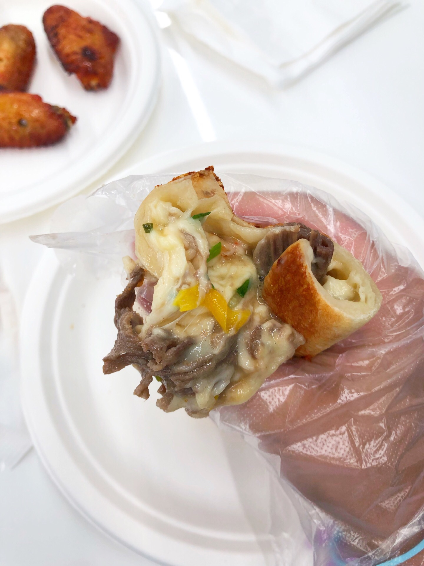 每次来山姆都忍不住来山姆餐吧吃牛肉卷。 牛肉卷真的太太太好吃了!汁水超级多!加上芝士和扎实的牛肉,关键一大个才20块钱!又管饱又可以满足味蕾… 再来一份奥尔良烤鸡翅,也是好吃到不行… 节假日错峰的话人不是很多哈! 取餐的时候会提供一次性手套,吃起来很方便哦~ 吃饱喝足逛山姆超市去啦!