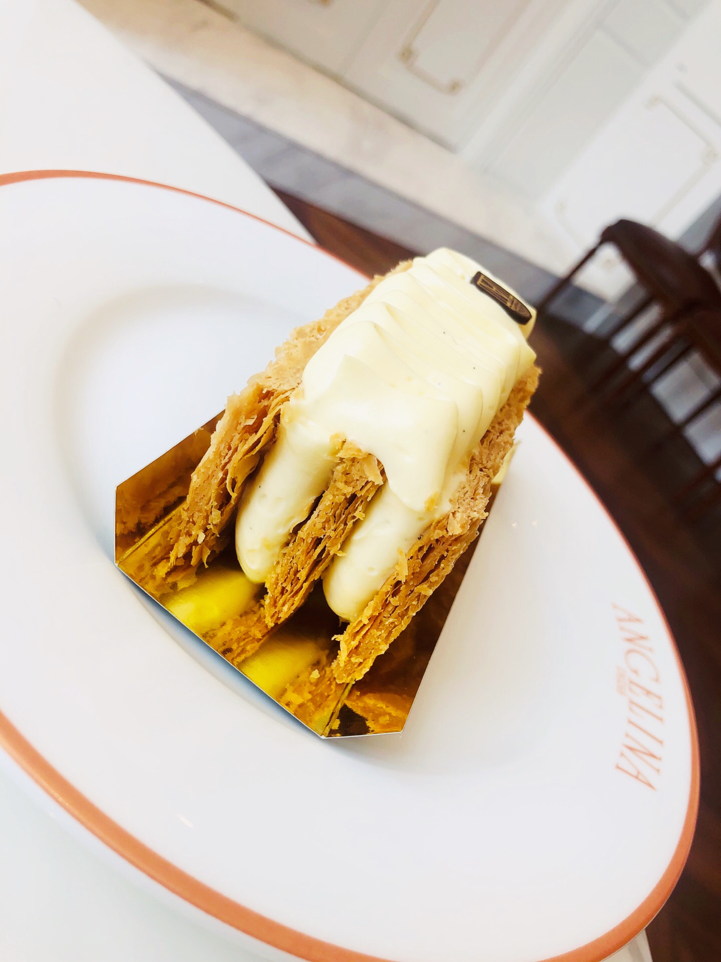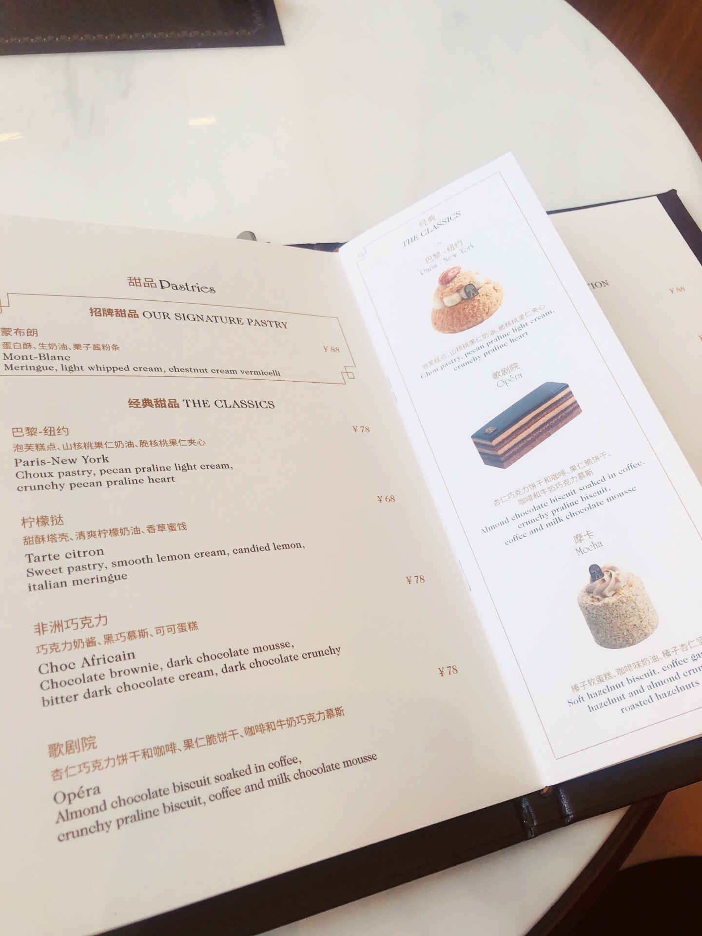 【环境】作为Groupebertand旗下名声最为显赫的品牌,可谓称得上法国百年顶级奢华西点。这次空降长沙IFS,甜品爱好者的我必须!必须要去拔草!店铺是8月底才开业,坐落在L4比较靠内的位置,但是里面有超好视觉感受的景观位。 【环境】从装修风格和布局上就看得出来很正很高端,法式的家具、艺术格调、巨型壁画、将风情和浪漫完美结合。全景的落地窗让品尝的时候心情和心境更加愉悦和享受。一进入大堂,橱窗里琳琅满目,摆放了很多经典的甜点还有茶品,每一款都让我非常心动!处处散发着品牌的严谨和奢华。逼格真的很高! 【服务】全员都身着正装,举手投足间尽显绅士气度,服务温文尔雅,正当不知如何抉择时,店长小姐姐过来热情推荐了一番,果然既惊喜又意外。因为第一次尝试,介于法式甜点的甜度很浓,所以第一印象对于选择非常重要,还好有店长在旁边耐心推荐,无雷区! 【口味】 「拿破仑」好像又叫做“千层酥”,从外观就能看得出大师的精湛工艺,最外层的酥皮香脆,里面的夹层超丰富,不仅有鲜奶油还有吉士酱,甜而不腻,很适合第一次尝试安吉丽娜的吃货们!吃的时候可以让服务生给你切好,这样每一口都能感受到极致,售价78RMB,对于这种品质还是超值的! 「百香果芒果」店长在诸多口味的冰淇淋里又安利给我的一个选择,首先颜色看起来就很好看,又是我爱吃的百香果和芒果,果然超美味,入口的口感很棒,里面有果肉粒,酸酸甜甜,还能在嘴里细嚼品味,单球28RMB,值得! 【综合】无论从环境、用餐体验、服务、出品工艺都是非常值得拔草的!据说国内也为数不多,听说主厨根据长沙市场还开发了专门的产品线。下次有机会再来尝试这家店的主打产品「蒙布朗」栗子蛋糕和热巧克力,还有心心念念的「柑橘柚子芝士慕斯」,期待下一次味蕾的邂逅!