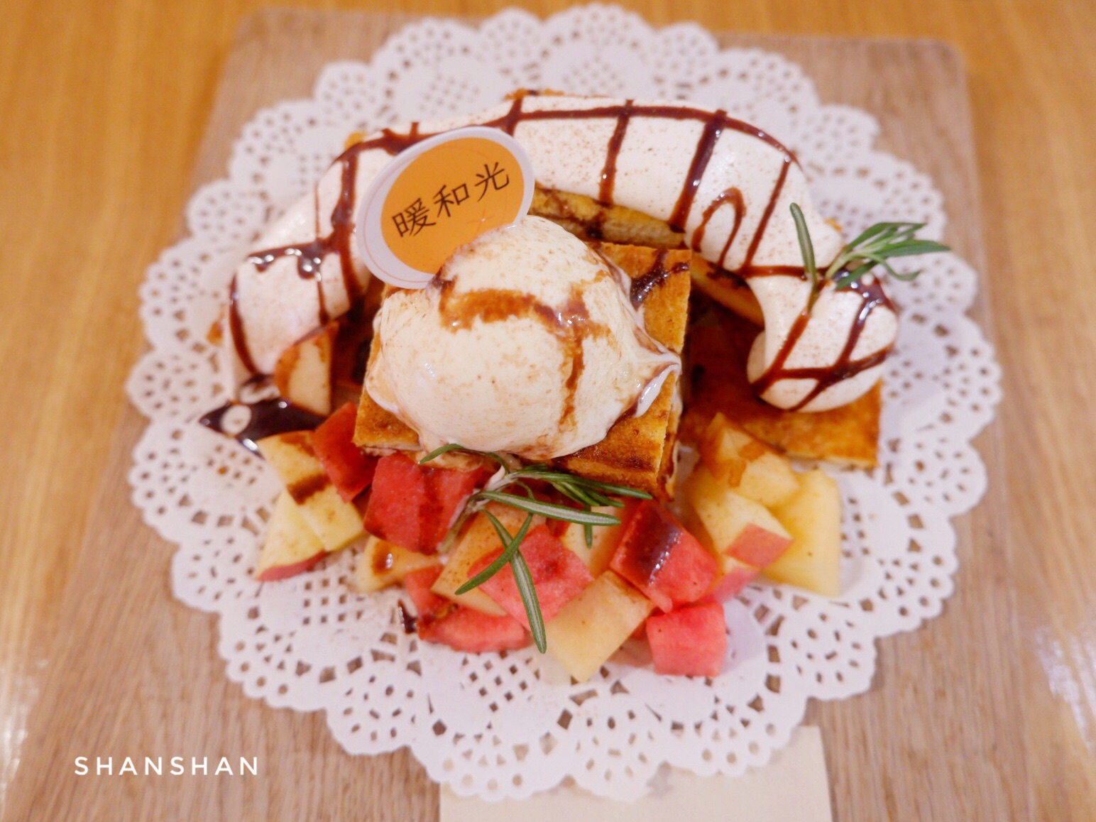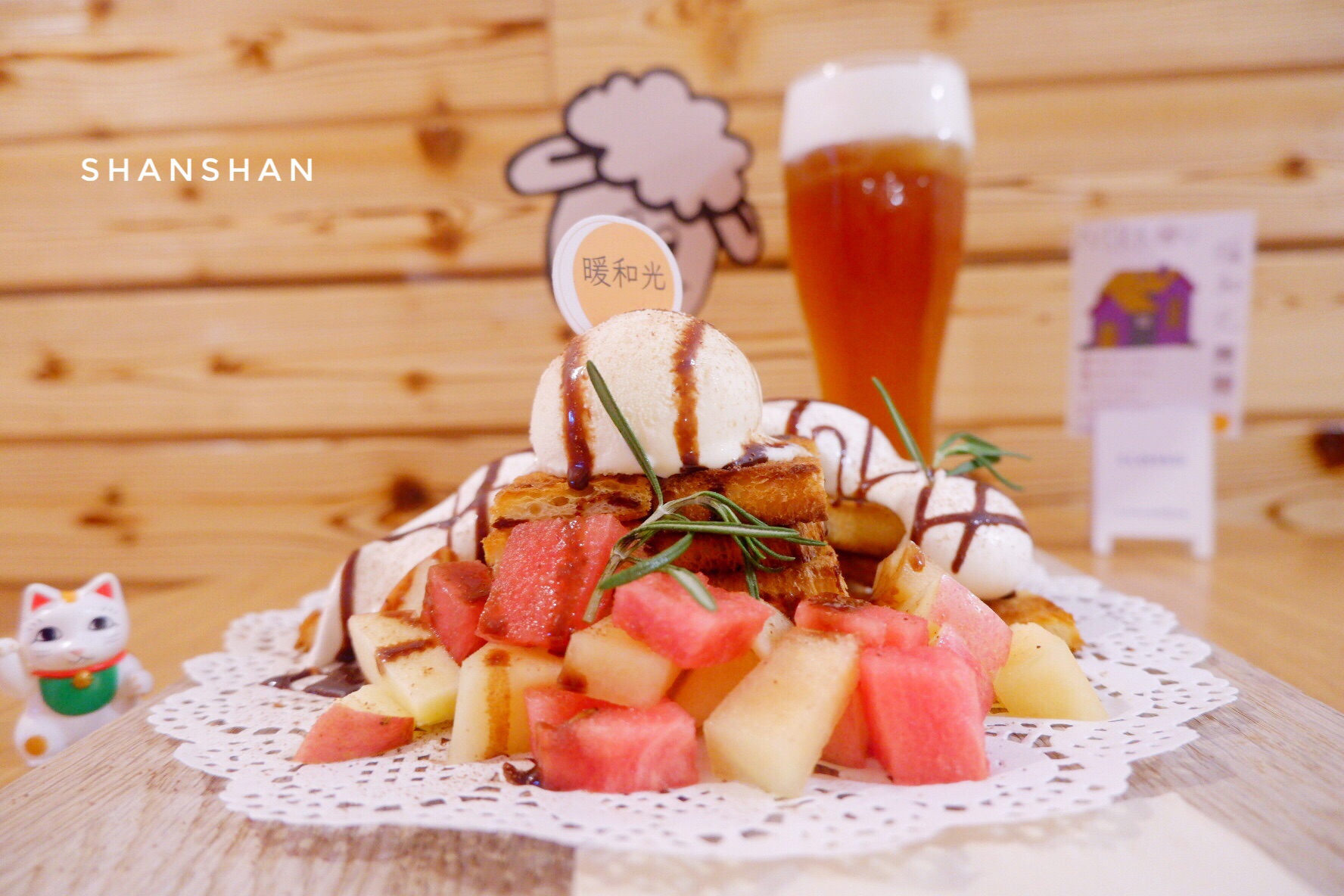 那么热的天 如果有杯冰冻的红茶 加上甜甜的点心 想必心情也会SHINING起来 暖和光就是这样一家 充满夏天味道的店 【大体环境】 店里布置的很温馨 暖黄的灯光、贴满照片的墙壁 给人一种暖暖的感觉 符合店主温暖如夏的灿烂气质 各类手办衍生品 透露着店主对原创的坚持 每一样都想带回家 仿佛回到童真年代 【餐点介绍】 ✨红茶玛奇朵 红茶选用精品茶味 搭配金骏眉茶叶 精心泡制 红茶的甘甜 奶盖的浓郁 恰到其份的融合 第一口的红色云彩 回味甜中有甘 茶中有奶的香甜 奶中混合着茶的韵味 是款很值得推荐的饮品 ✨富士山下 甜点都是现烤现做 从下单到上桌需要等上几分钟 超高颜值的一款甜品 夏季限定款 经过现烤后 面包外酥内软 淋上巧克力酱、奶油、玛奇朵奶盖 再搭配冰淇淋、水果等 简直是少女杀手 甜味恰到好处 吃起来也不会很腻 而且用料十足 一口下去口感层次丰富 吃一上口 就对爱情和生活多一份理解 【总体评价】 店主用心做的小卡片 生动精致有趣 适合朋友小聚聊天发呆 喜欢这样有情怀、有温度的小店 希望一直开下去 【人均消费】 25元左右