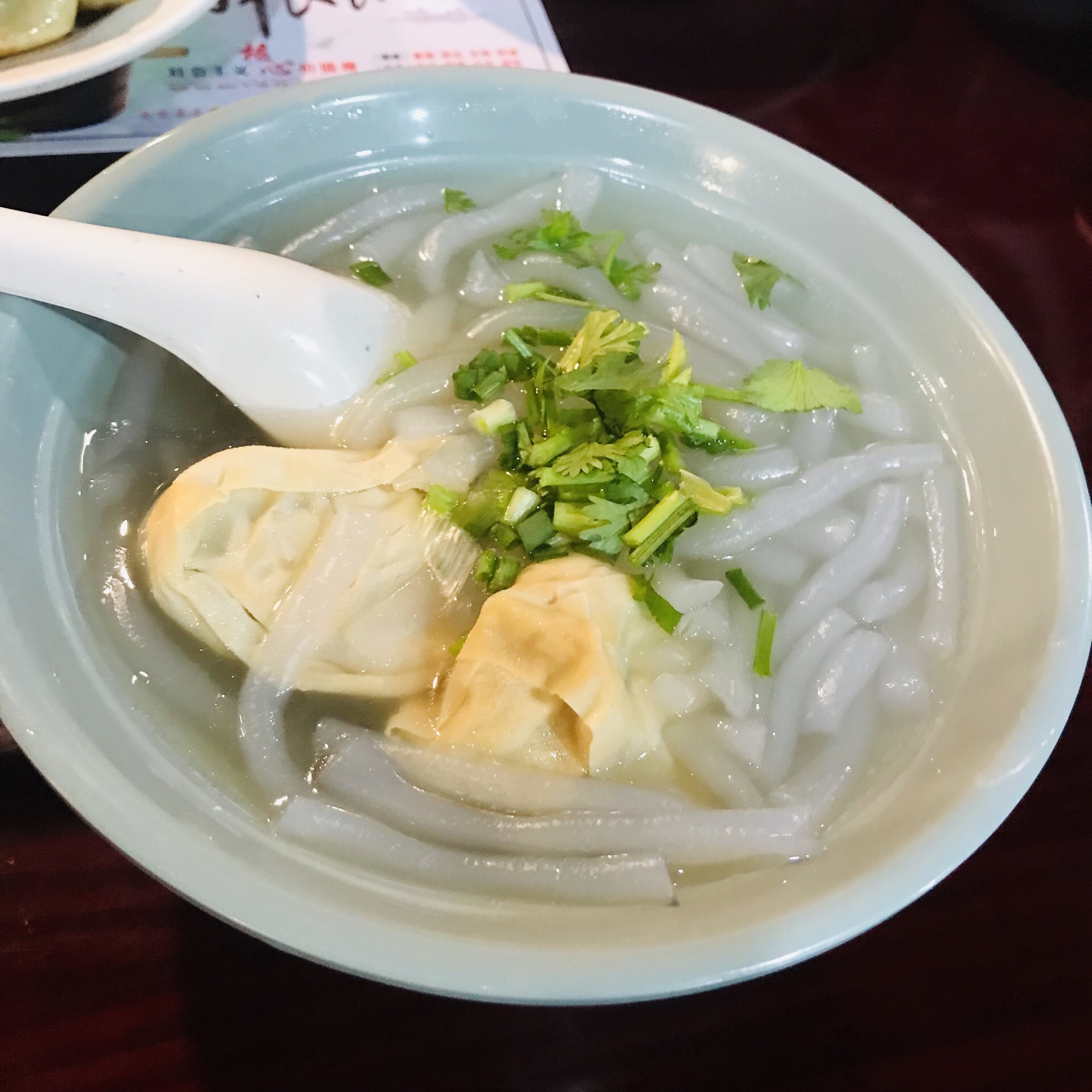 本来想吃酒店隔壁的网红餐厅,没想到晚上去的时候比中午人还多,只能放弃了。 朋友正好看到这家店,说是湖州传统的老字号餐厅,一行人就直接进去吃了。 二楼应该有炒菜,现在在整修,炒菜区就么有了,一楼是传统的小吃,主打就是千张包粉丝和各种面条。卤豆干,鸡爪,煎饺都算是主食的配套开胃菜。 比较意外的千张包粉丝里的粗条粉丝竟然也是绿豆粉,千张包分海鲜和经典,海鲜千张包里满满的鲜味,有干贝丝,鲜肉等混合在一起。 特色鸡爪比较有味道,像极了湖州和安吉这种喜欢咸鲜的口感。 [环境]我们进店的时候几乎没人,后面才陆陆续续来了些,没有炒菜,所以单价也比较便宜,没啥人气。